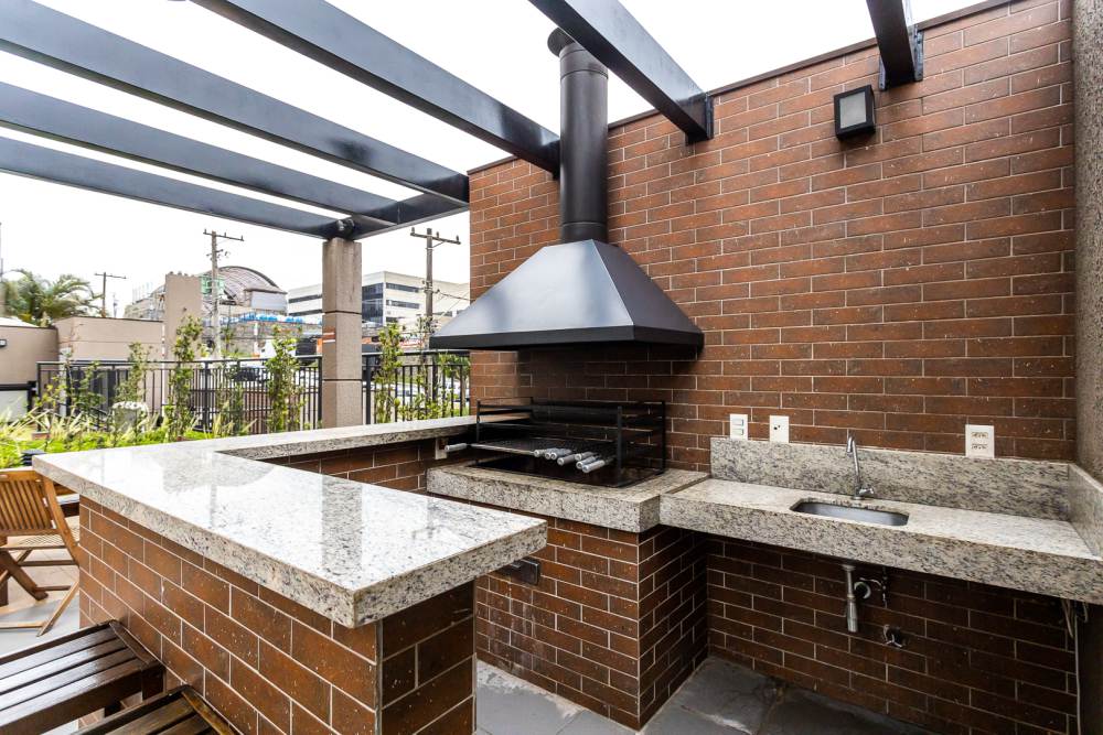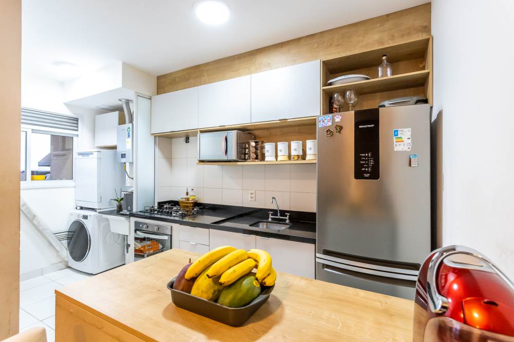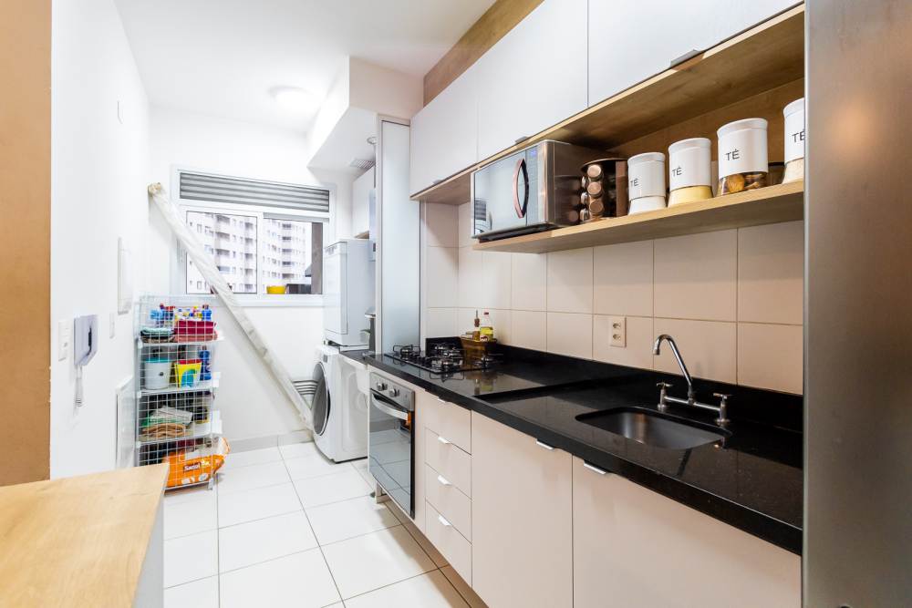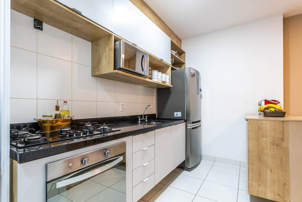 Cozinha equipada com armarios planejados. aquecedor a gas, cook top