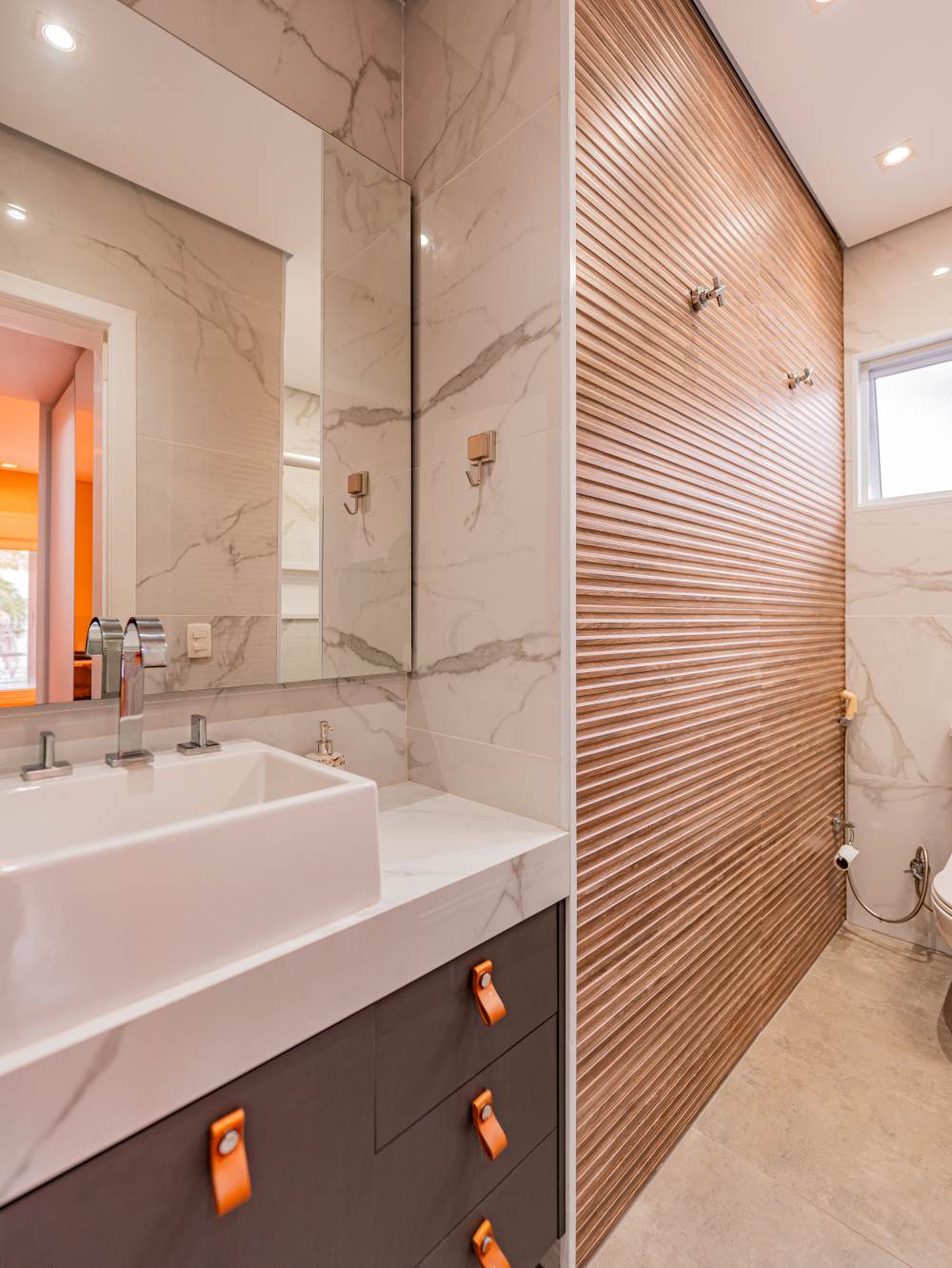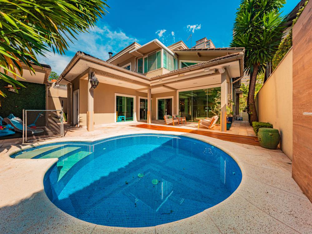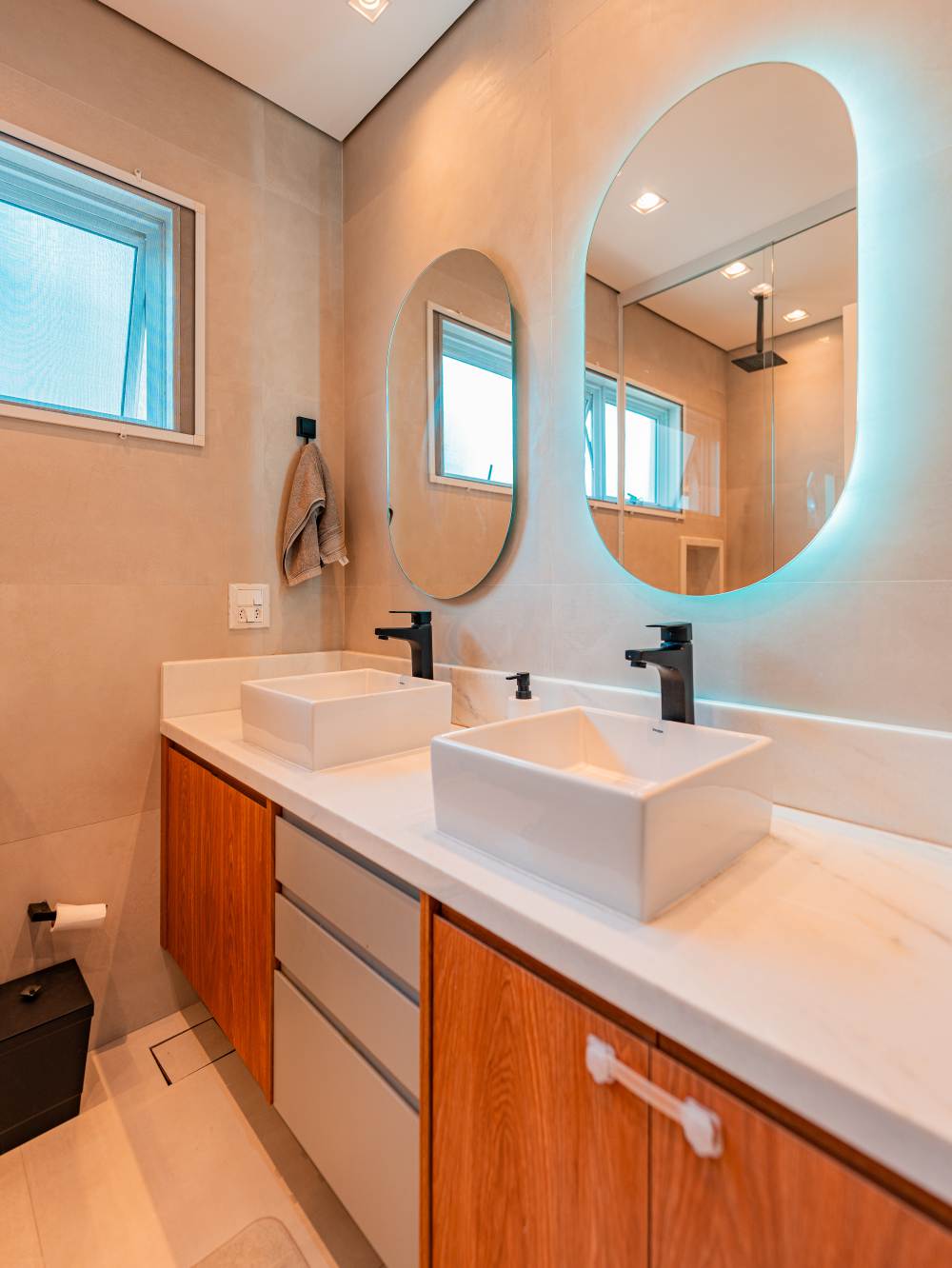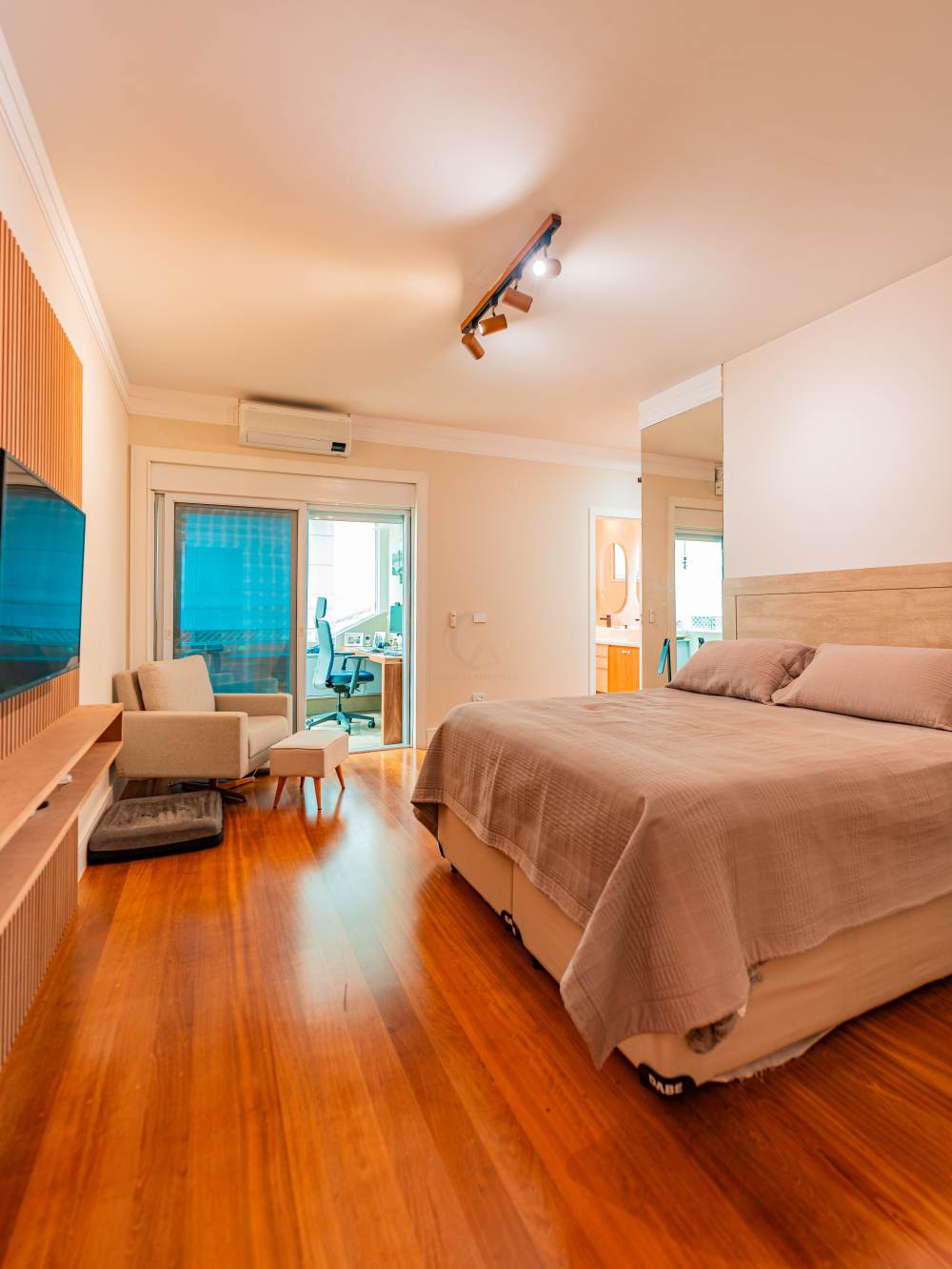 No pavimento superior, um belíssimo assoalho de madeira jatobá reveste os ambientes. Há três suítes amplas, todas com persianas automáticas. A suíte máster é um verdadeiro refúgio, com closet, pia dupla e chuveiro duplo em seu banheiro, além de um escritório privativo dentro da própria suíte. Todos os ambientes são climatizados com ar-condicionado, e a casa conta ainda com sistemas de energia solar e fotovoltaico, proporcionando eficiência energética e sustentabilidade.