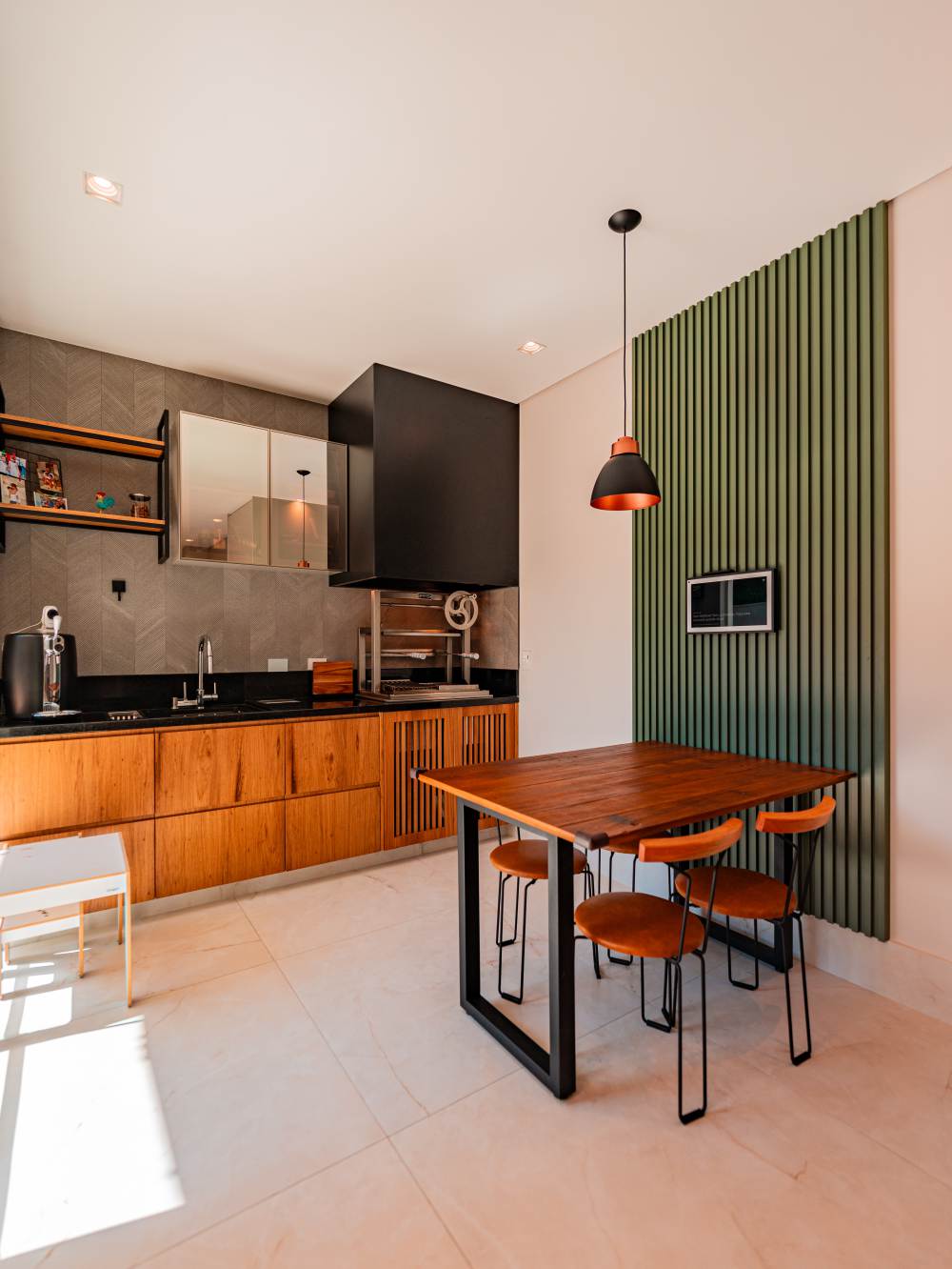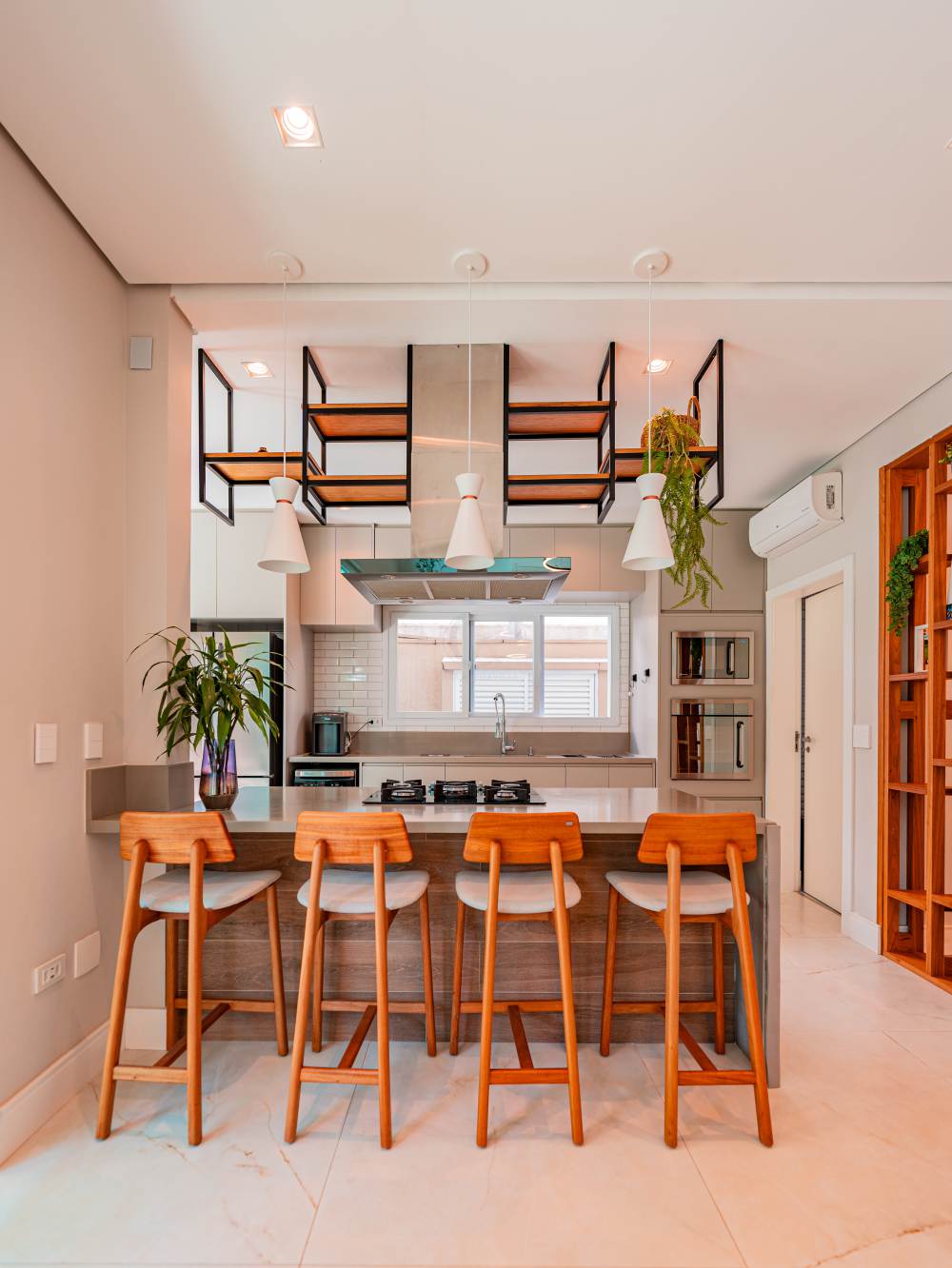 Cozinha com bancada ilha gourmet para 4 pessoas