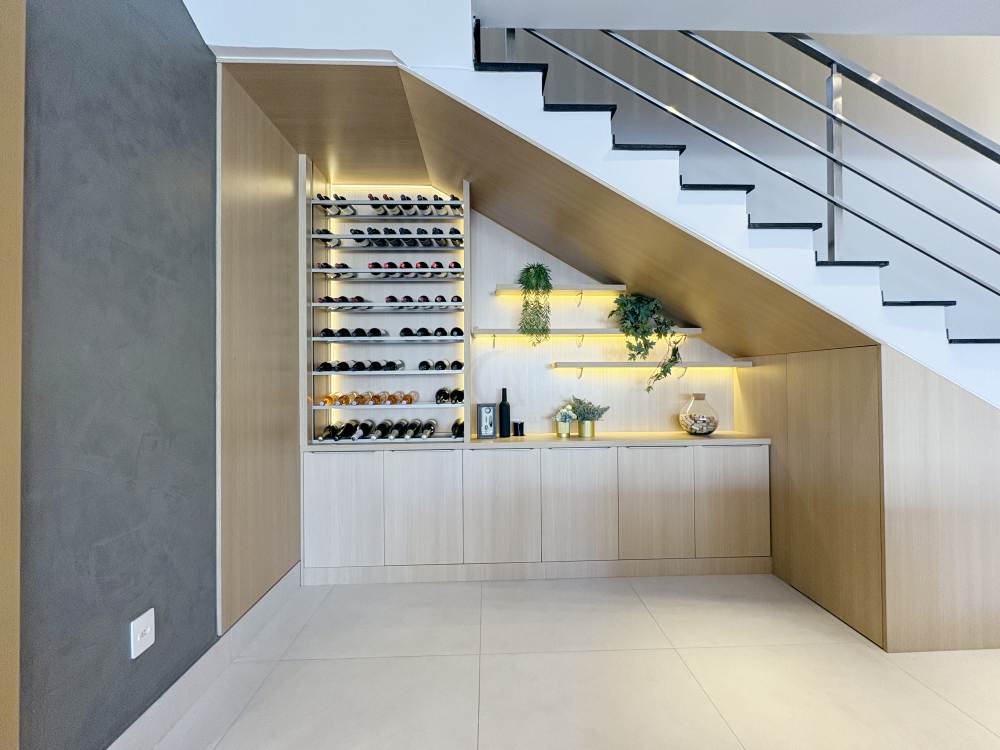 - Adega com espaço para quase 100 garrafas e