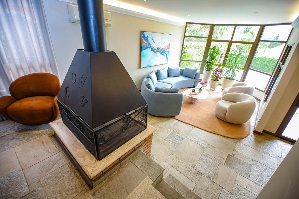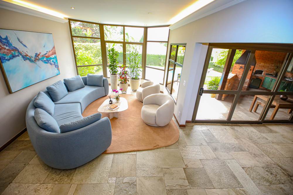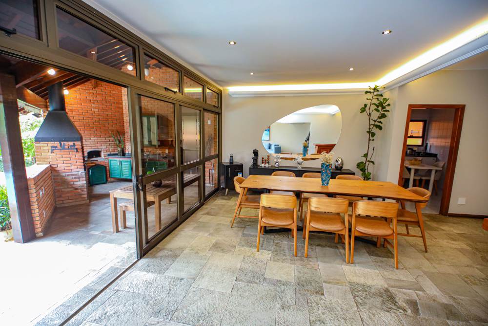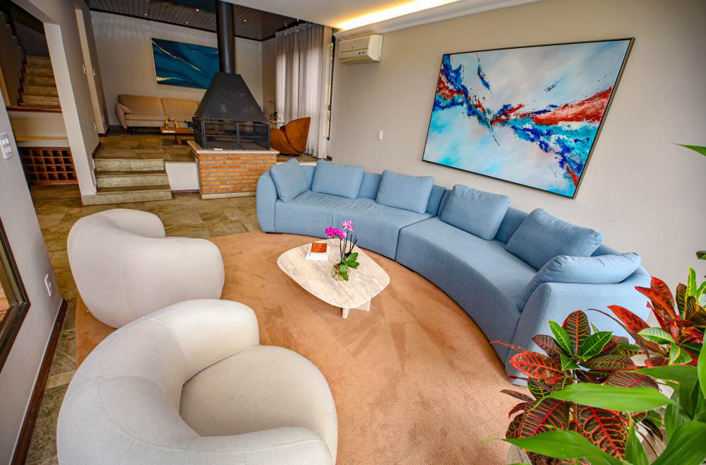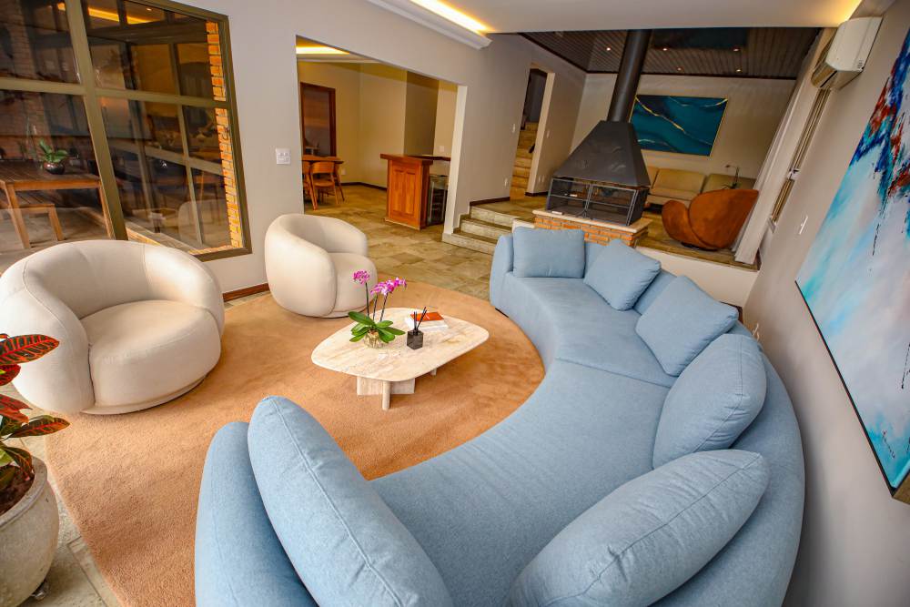 • 3 salas integradas e iluminadas: sala de estar com lareira, sala de estar com vista