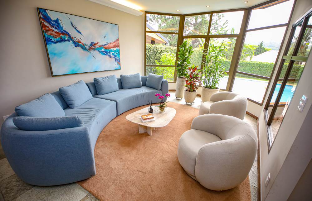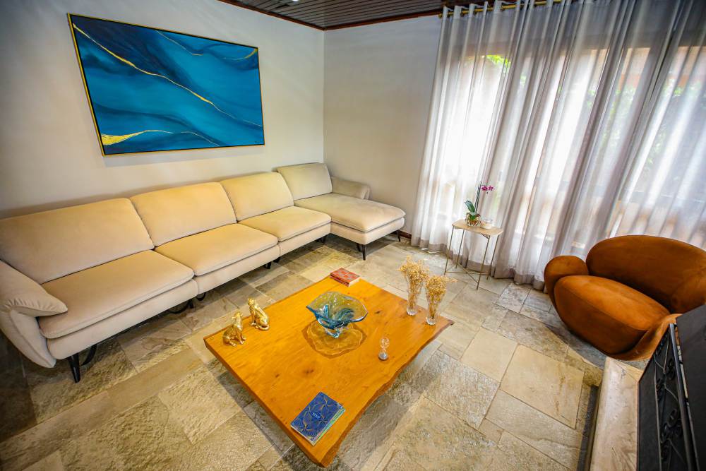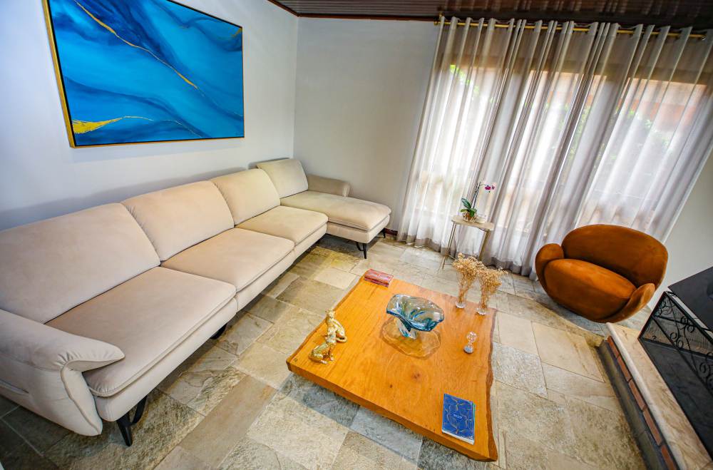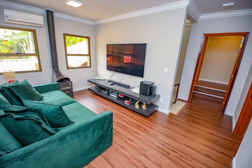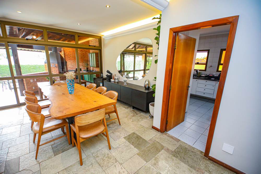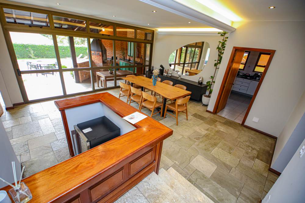 • 3 salas integradas e iluminadas: sala de estar com lareira, sala de estar com vista