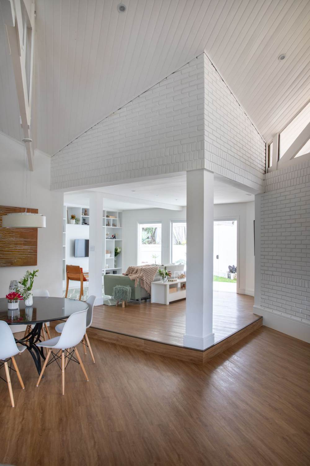 - Amplitude: Sala imponente com pé-direito duplo, abundante em luz natural em toda a casa, proporcionando uma sensação de liberdade e um ambiente estimulante.