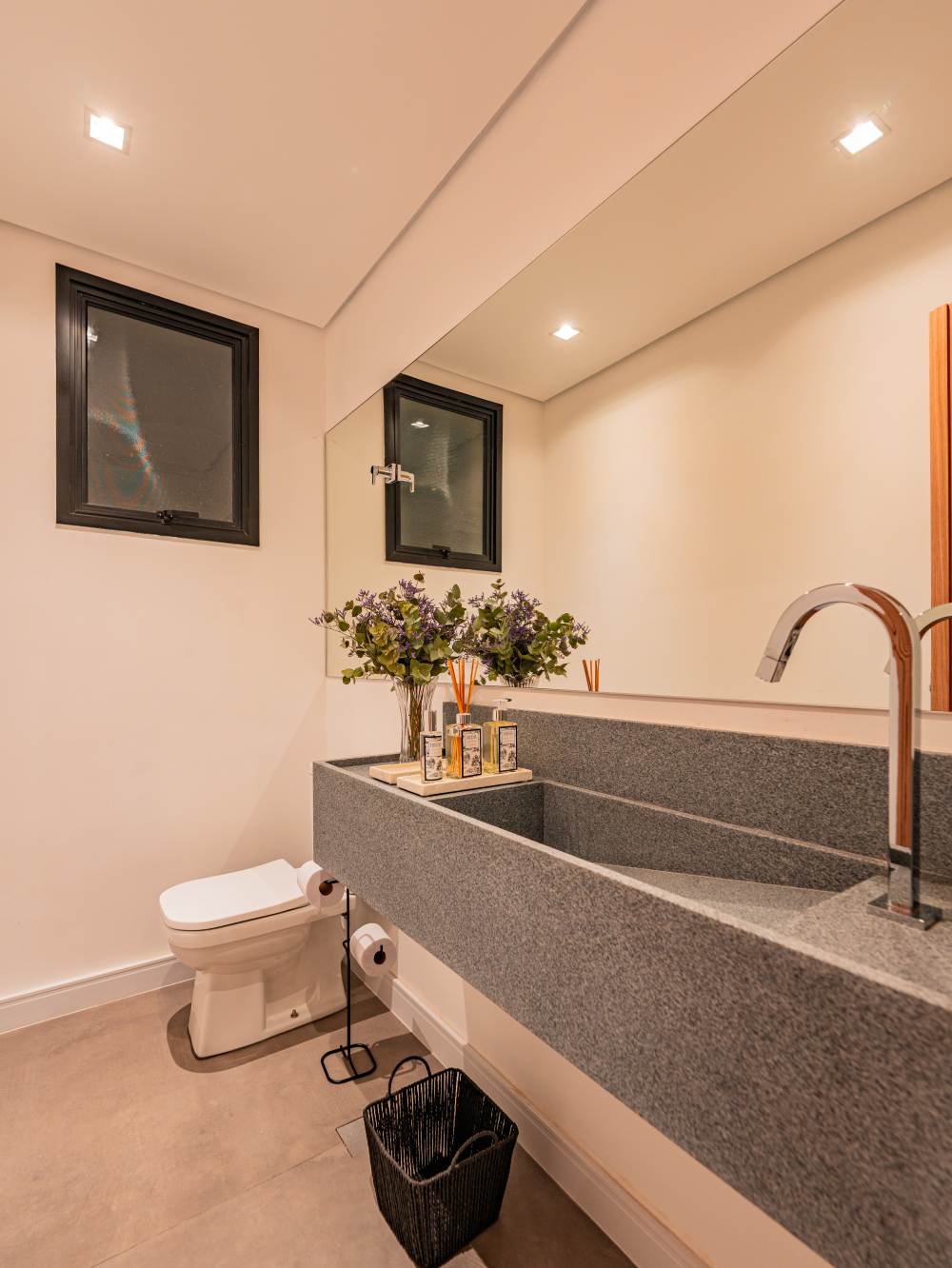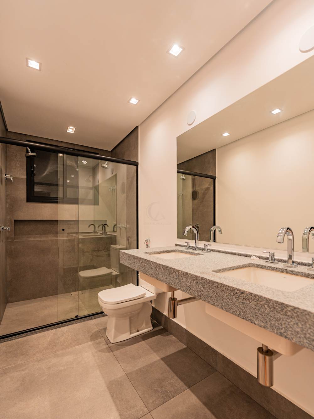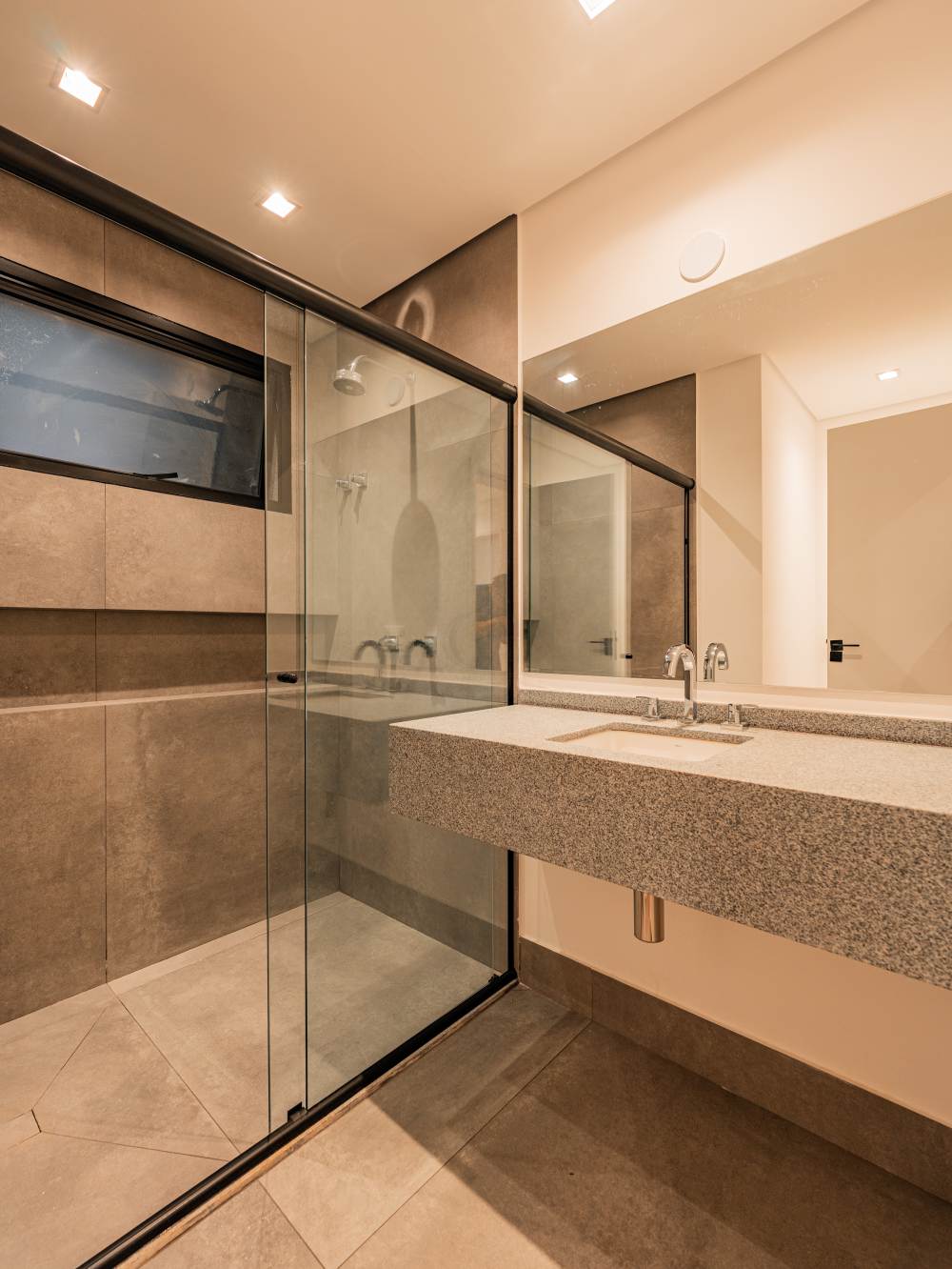 Suíte máster com terraço, closet espaçoso, duas cubas e ducha dupla