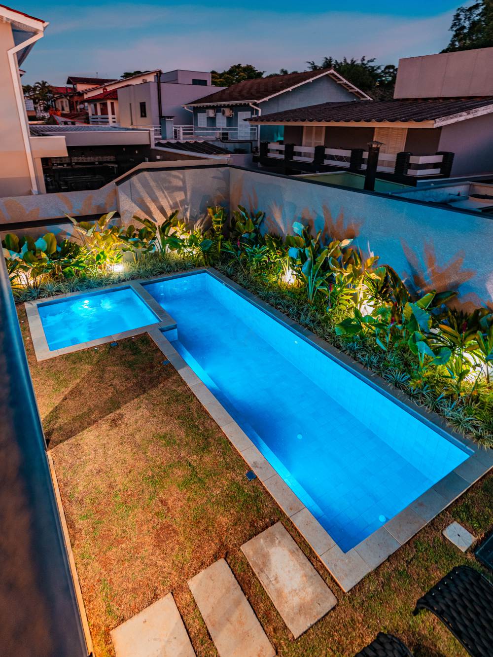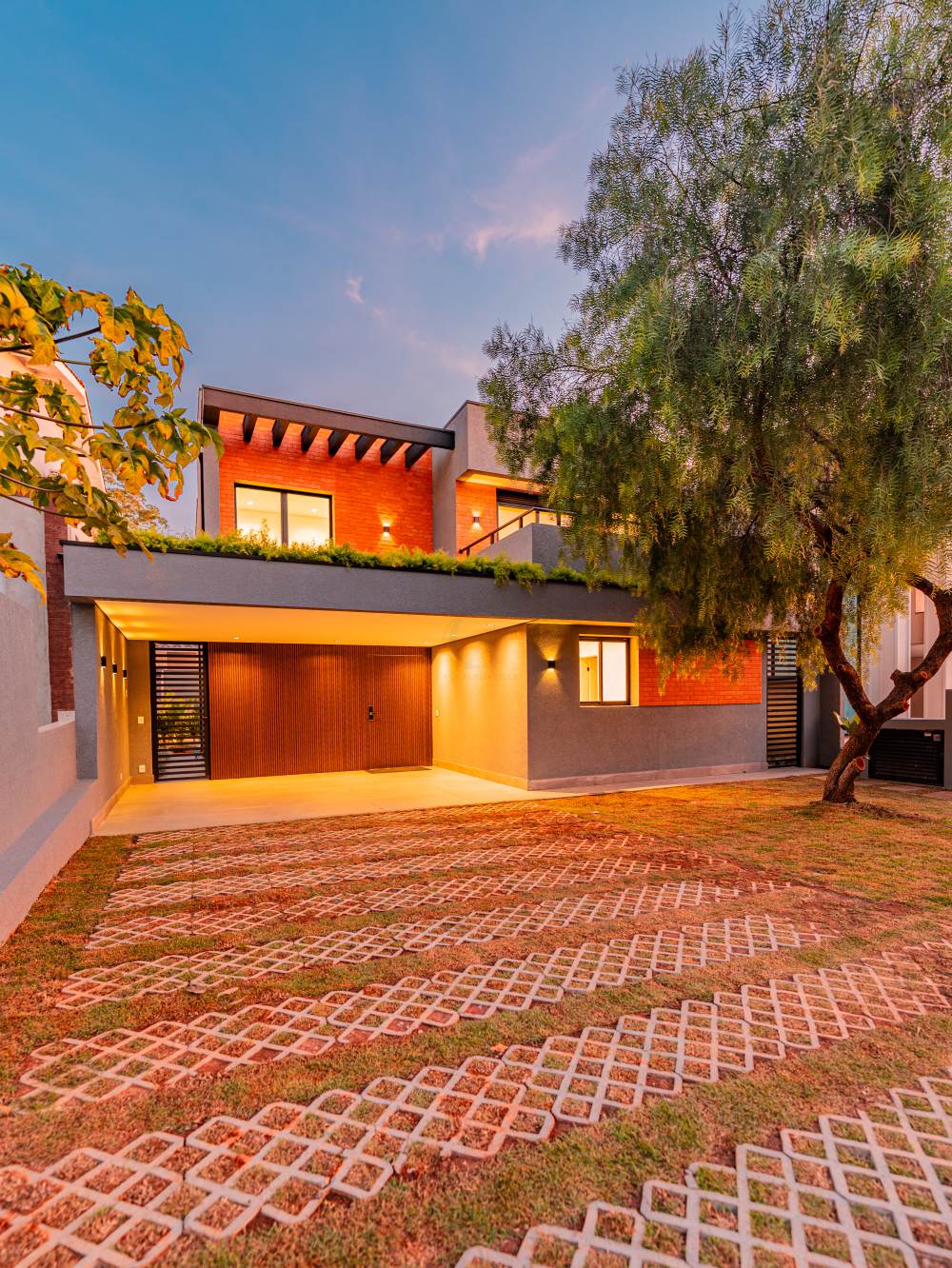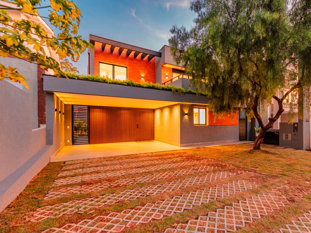 Residência contemporânea recém-construída, com excelente padrão de acabamento, ambientes integrados e tecnologia em cada detalhe. Projeto moderno em terreno plano, com fachada elegante e paisagismo completo.