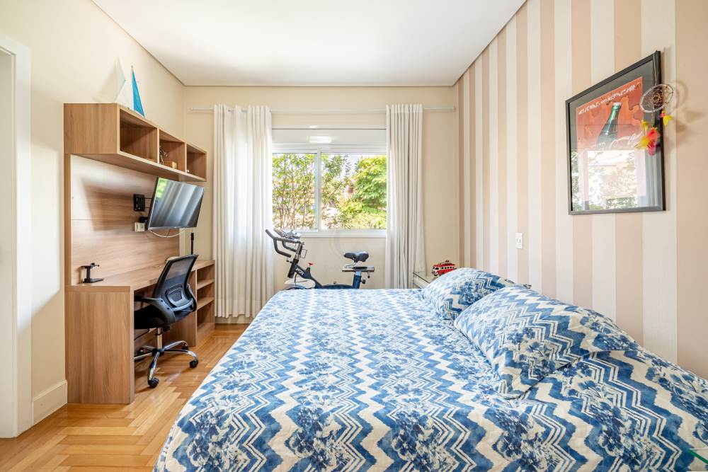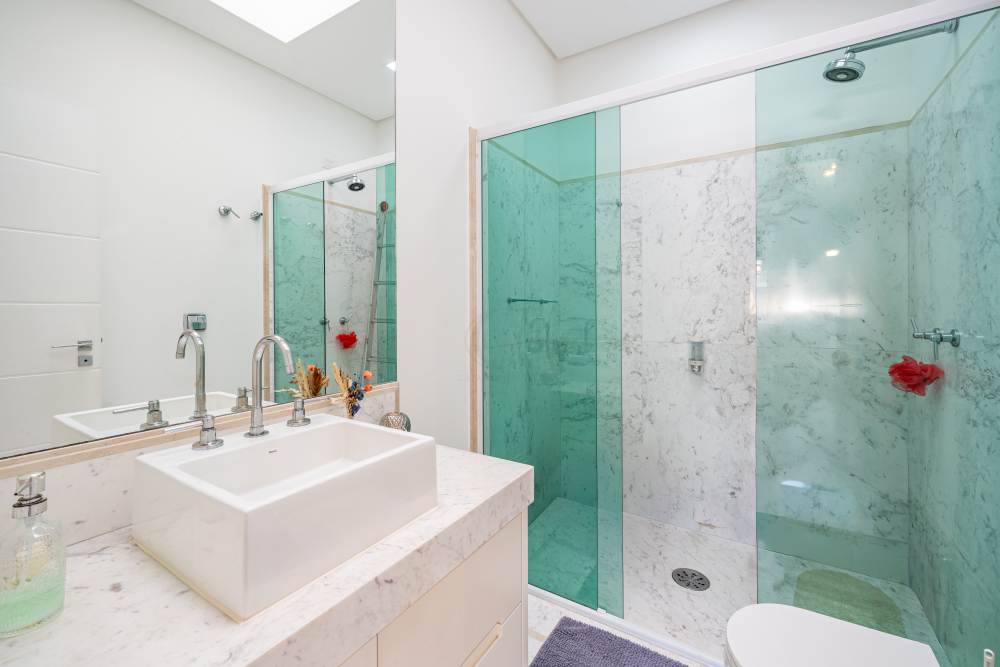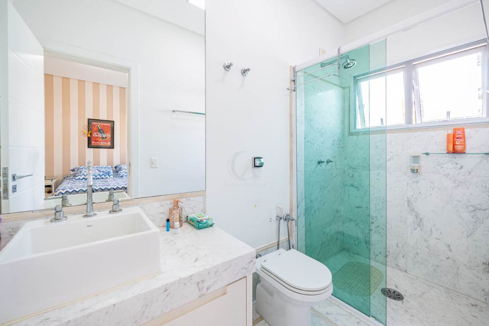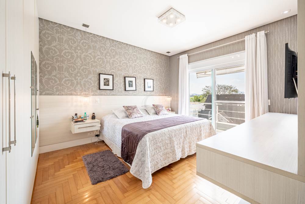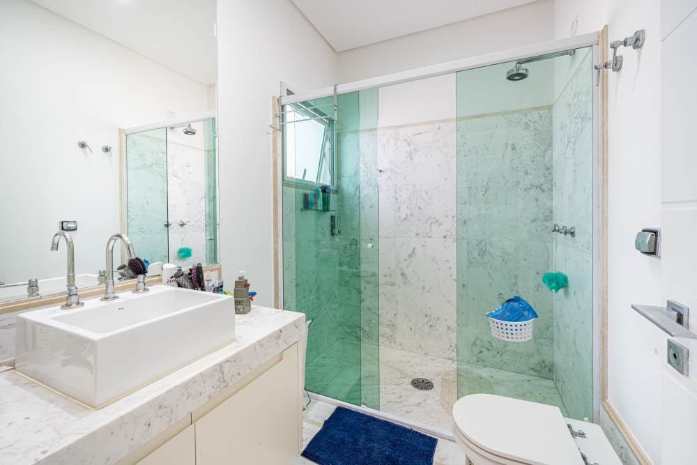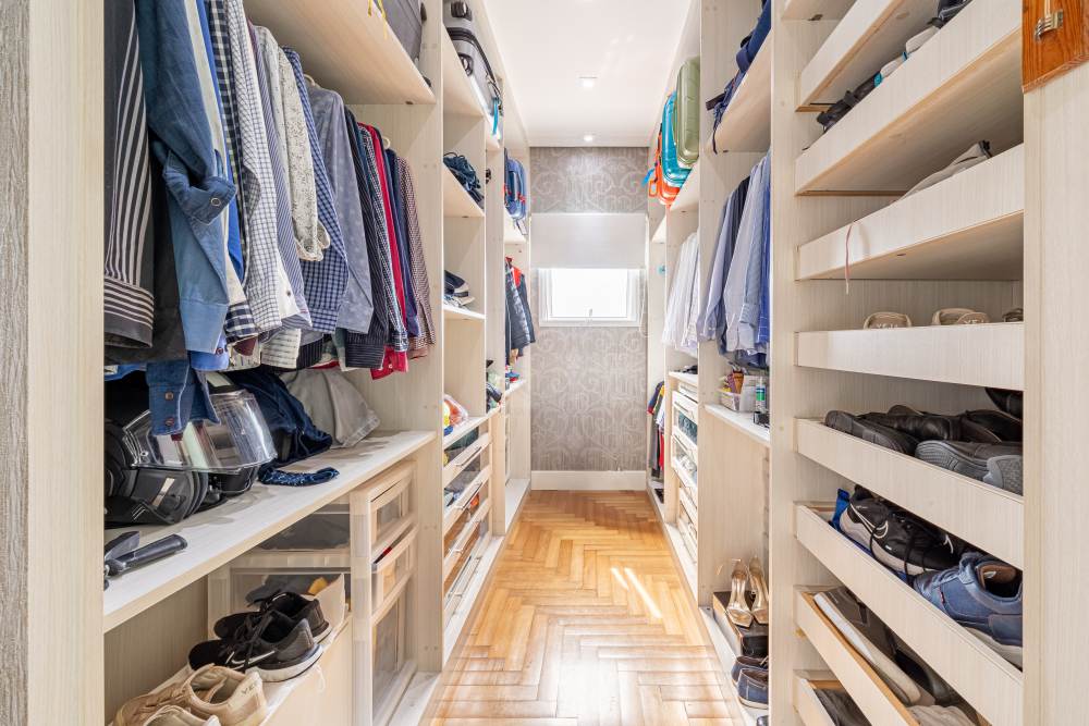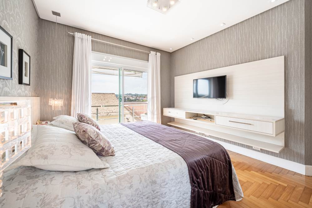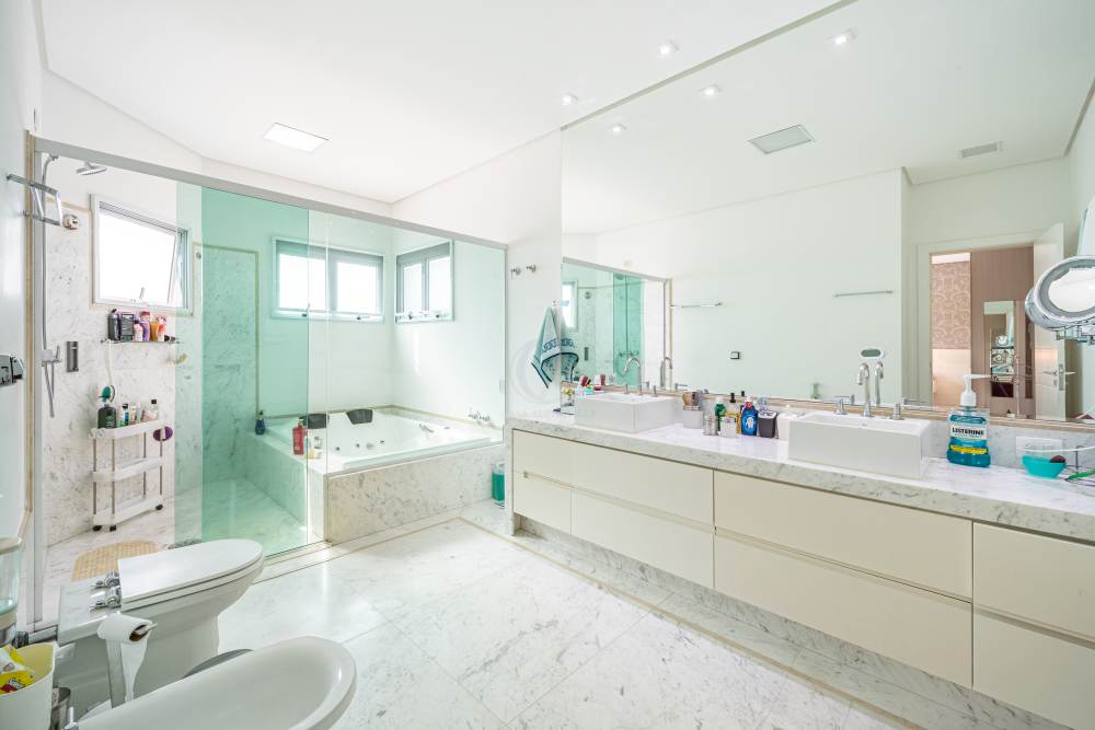 A suíte master encanta com closet espaçoso e hidromassagem.