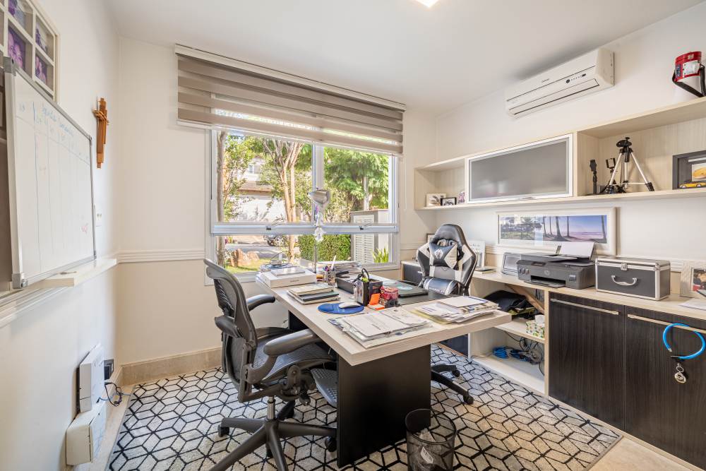 Ambiente reservado para home office, lavabo e climatização completa com ar-