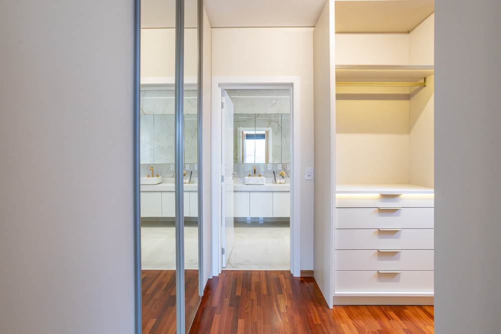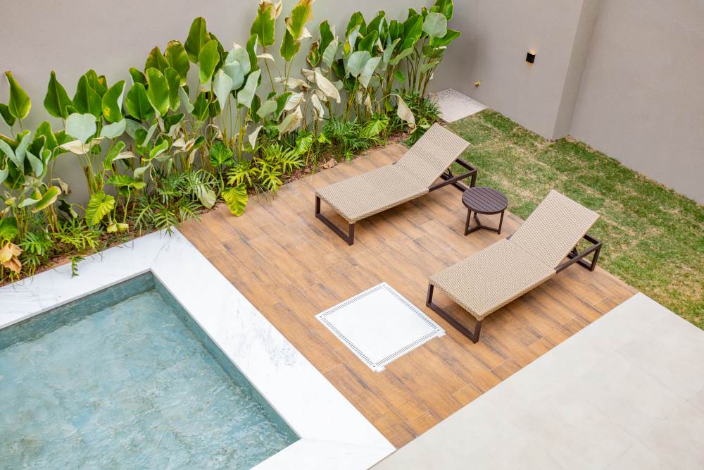 • Quartos em piso de madeira cumaru e demais áreas em porcelanato •