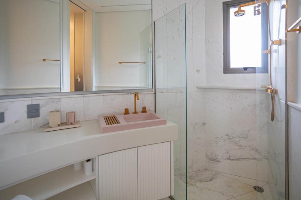 ● 4 suítes elegantes, incluindo master com closet duplo e banheiro em mármore
