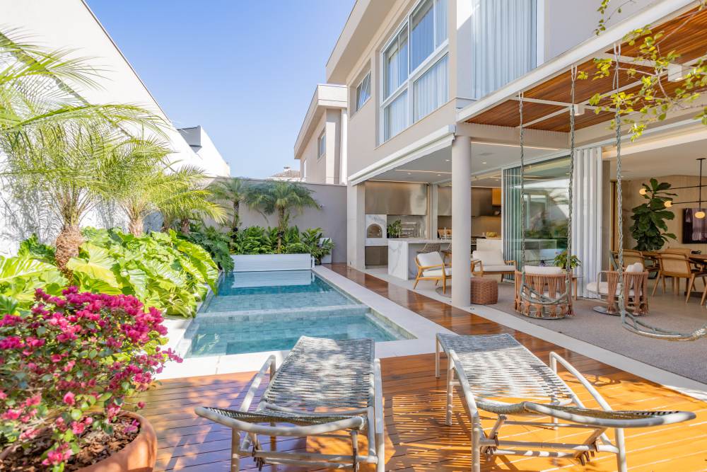 Localizada no exclusivo Condomínio Conde II, esta residência une arquitetura autoral,