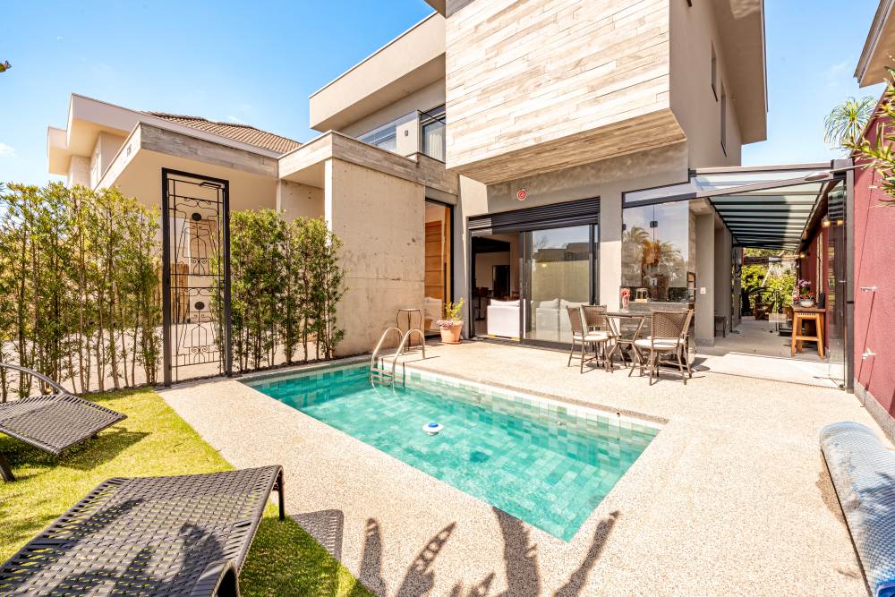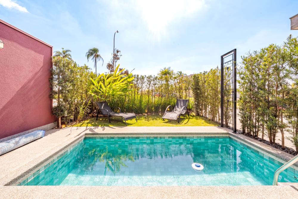 Piscina aquecida com iluminação