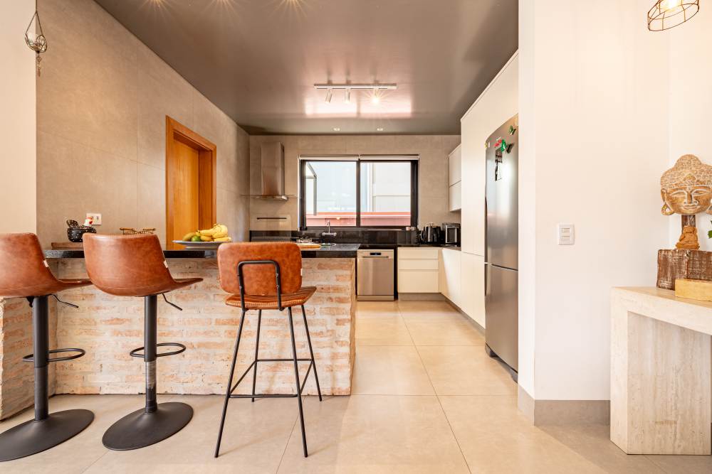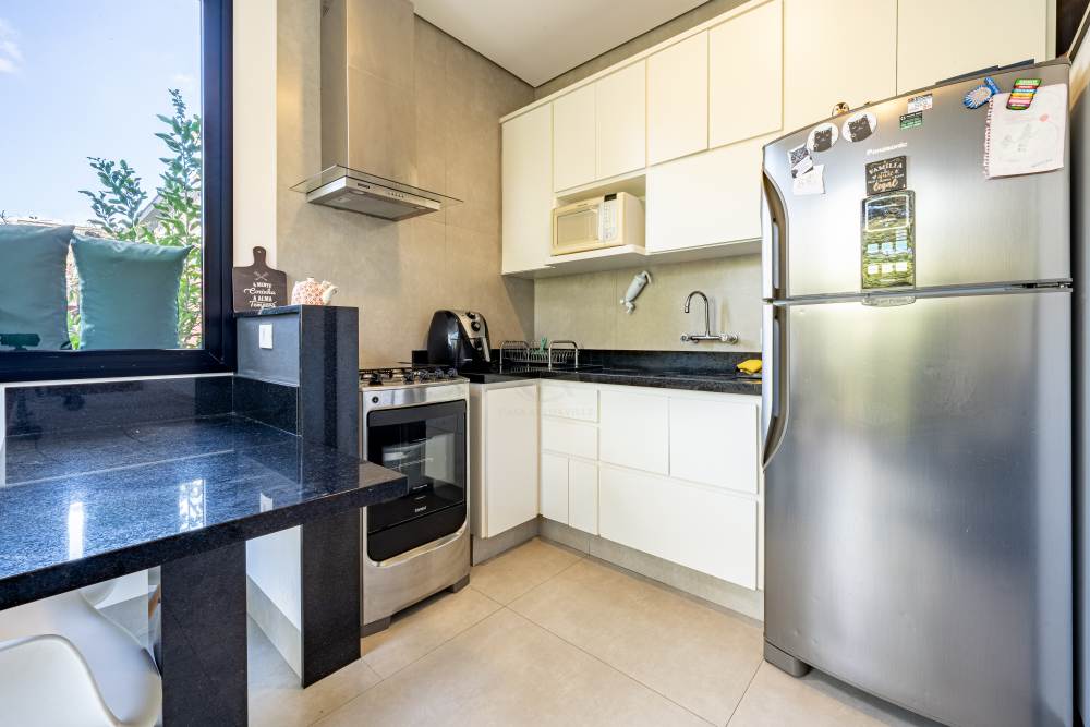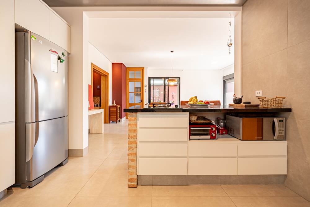 Cozinha integrada com sala e varanda