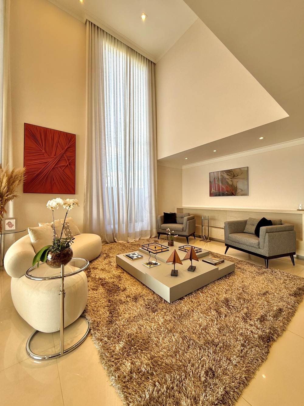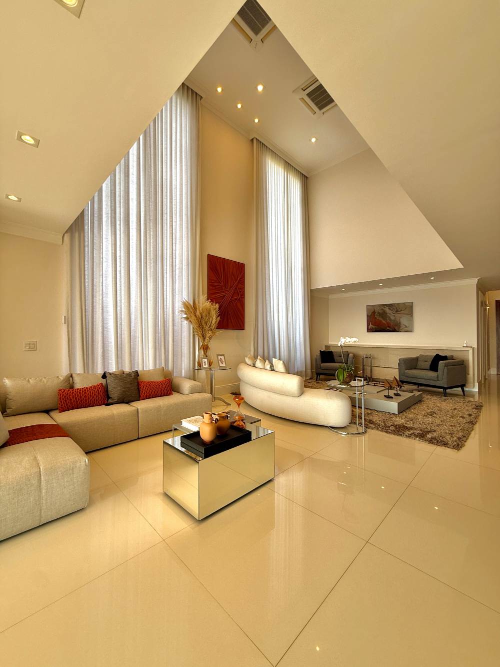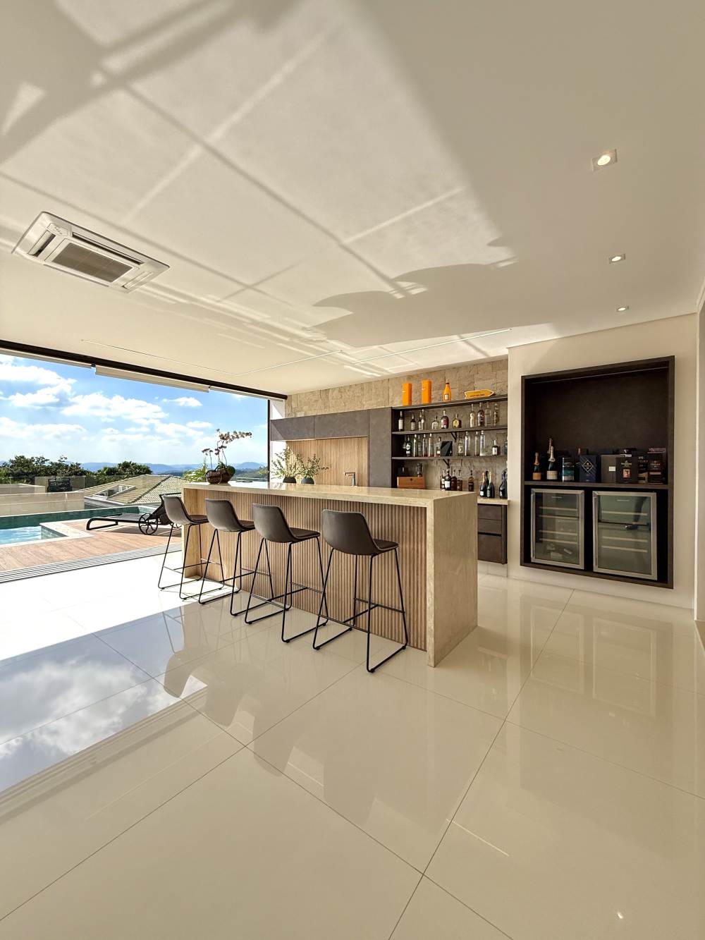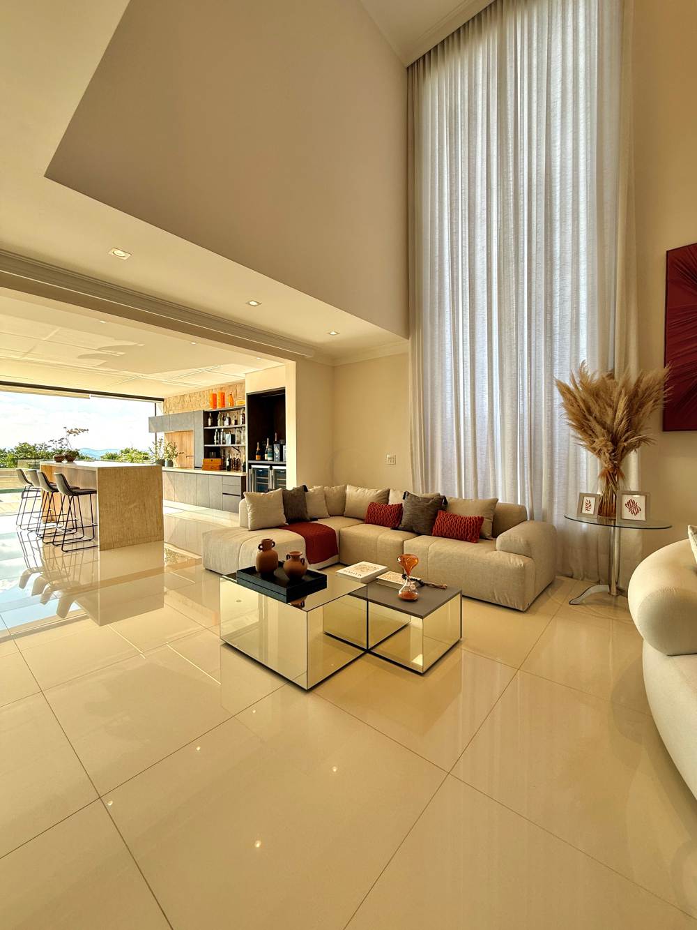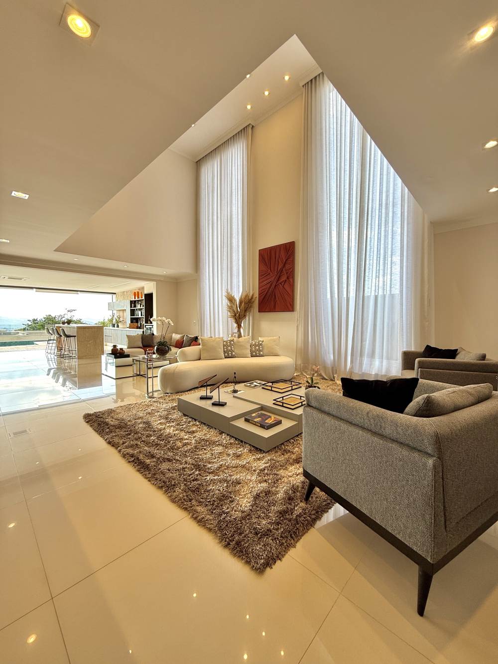 O pé direito duplo é imponente e dá um charme diferenciado ao imóvel. São 4 suítes, muito bem distribuídas em uma área construída de 430 m². A casa já está totalmente mobiliada e decorada, prontíssima para morar! Os móveis fixos são, em sua maioria, da ID Móveis, com exceção do espaço gourmet, que é assinado pela Kitchens. A infraestrutura é completa, com toda comodidade que a sua família busca!