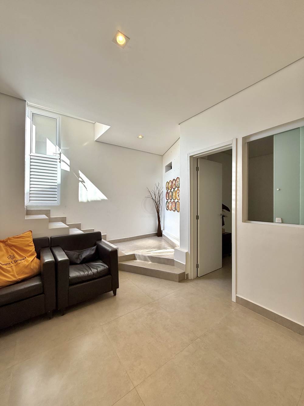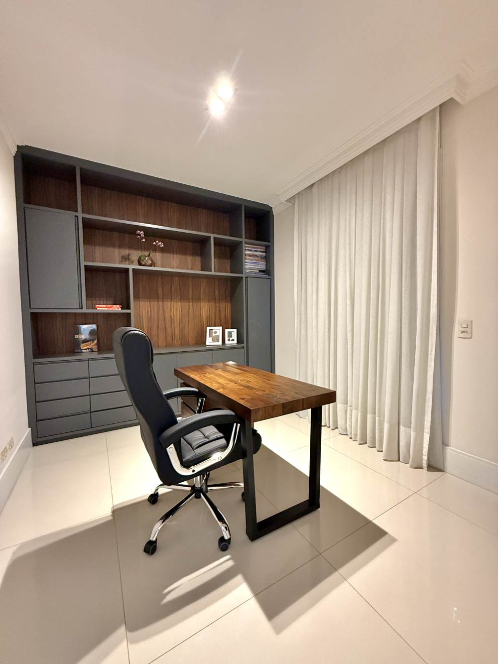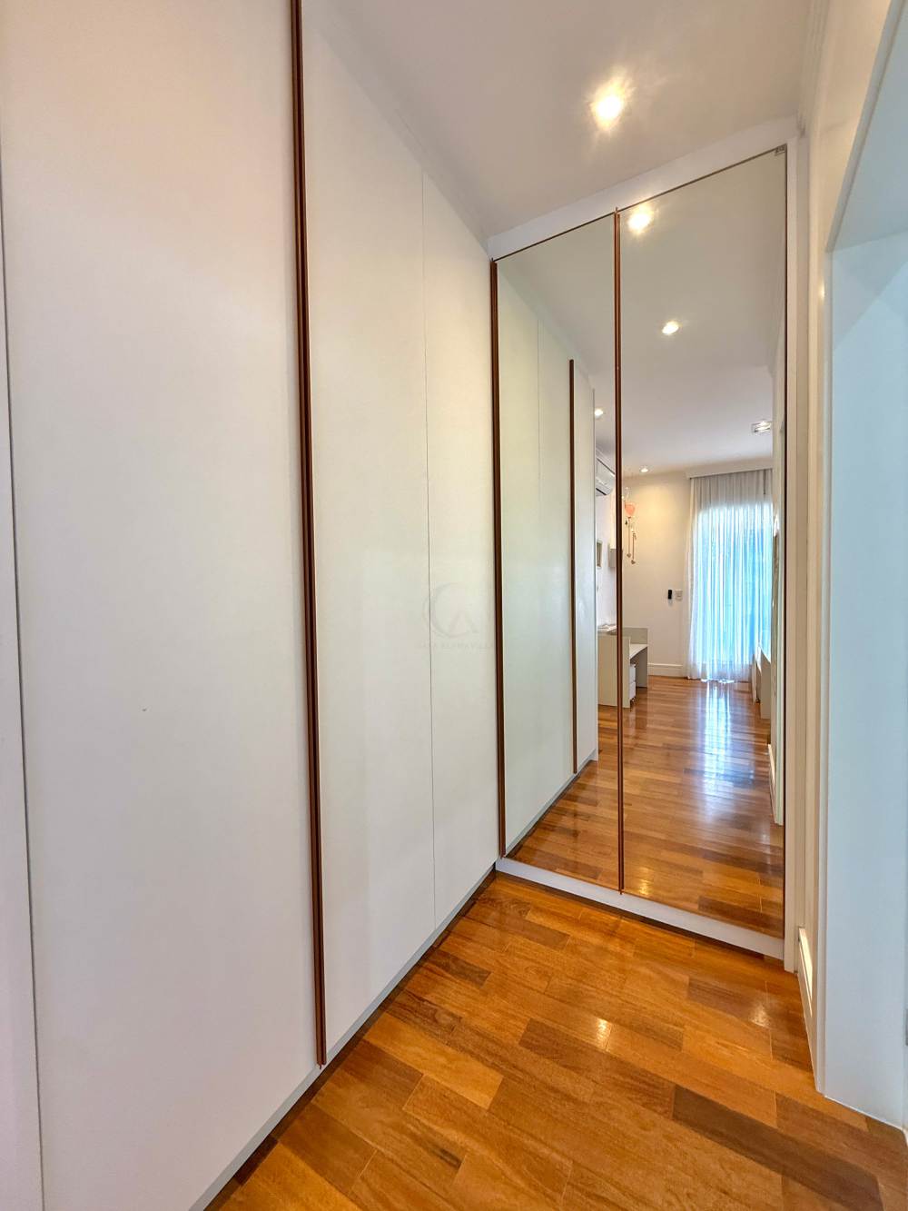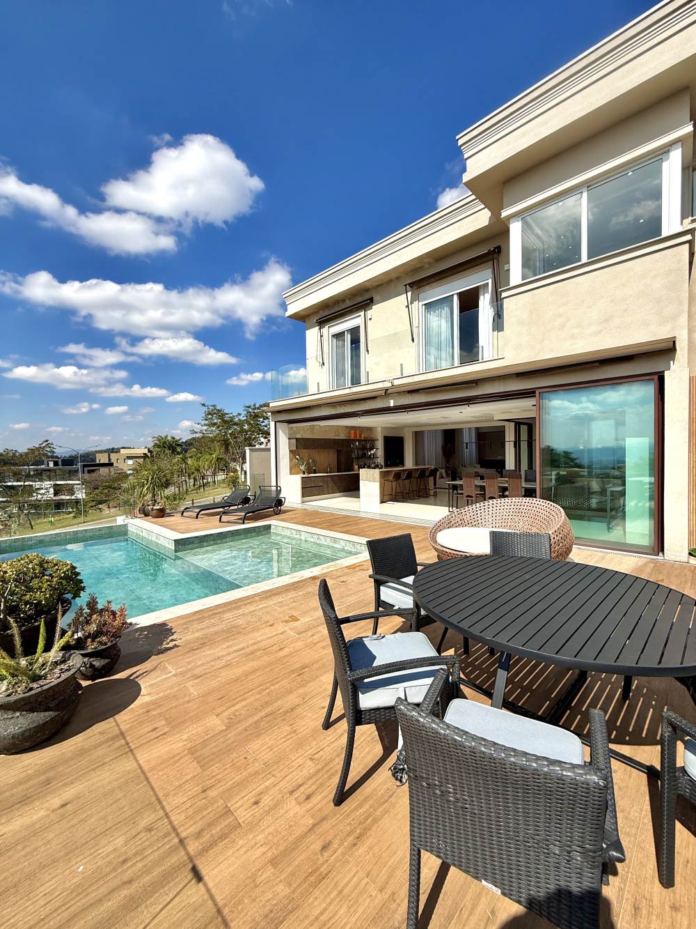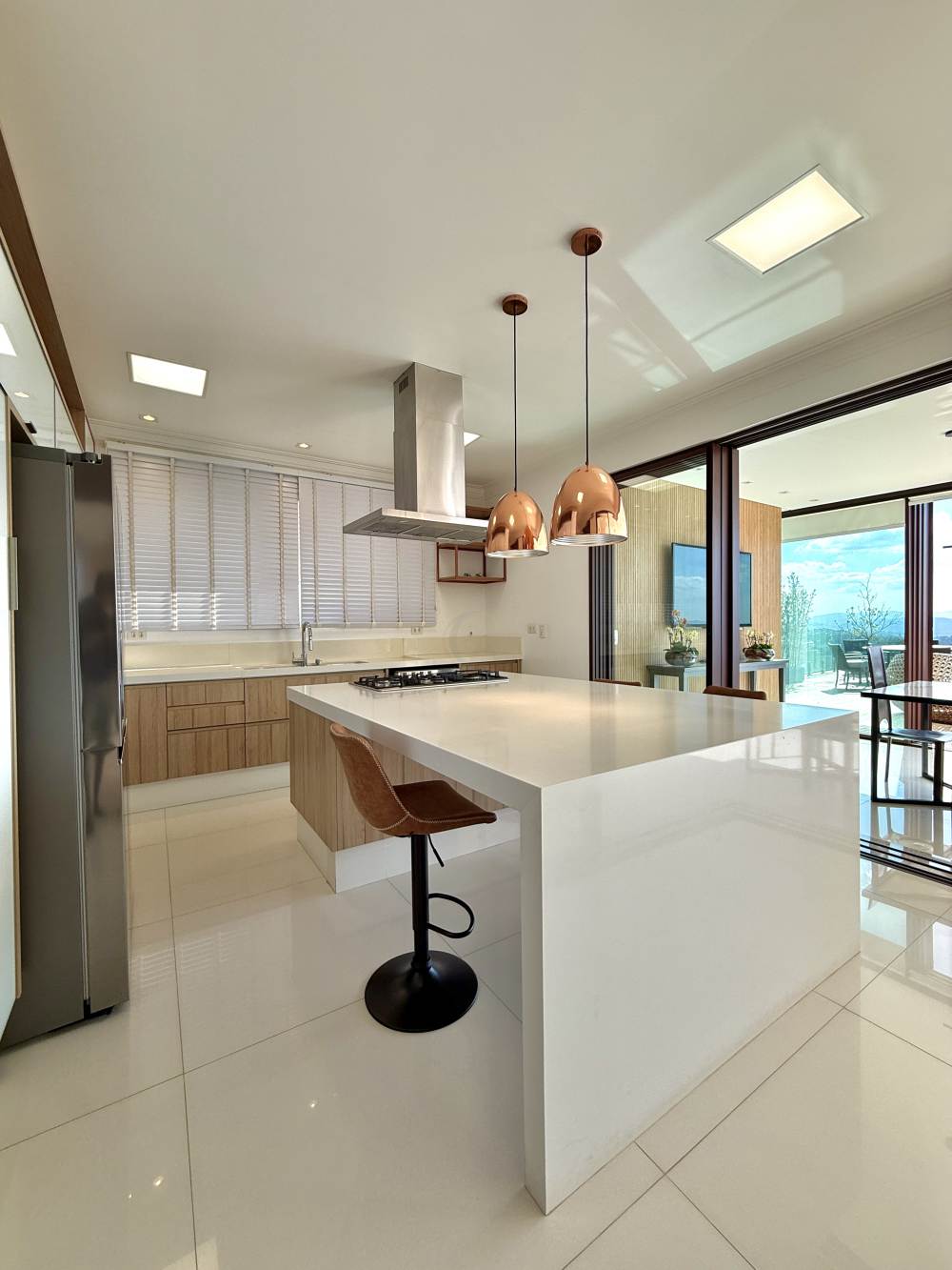 O pé direito duplo é imponente e dá um charme diferenciado ao imóvel. São 4 suítes, muito bem distribuídas em uma área construída de 430 m². A casa já está totalmente mobiliada e decorada, prontíssima para morar! Os móveis fixos são, em sua maioria, da ID Móveis, com exceção do espaço gourmet, que é assinado pela Kitchens. A infraestrutura é completa, com toda comodidade que a sua família busca!