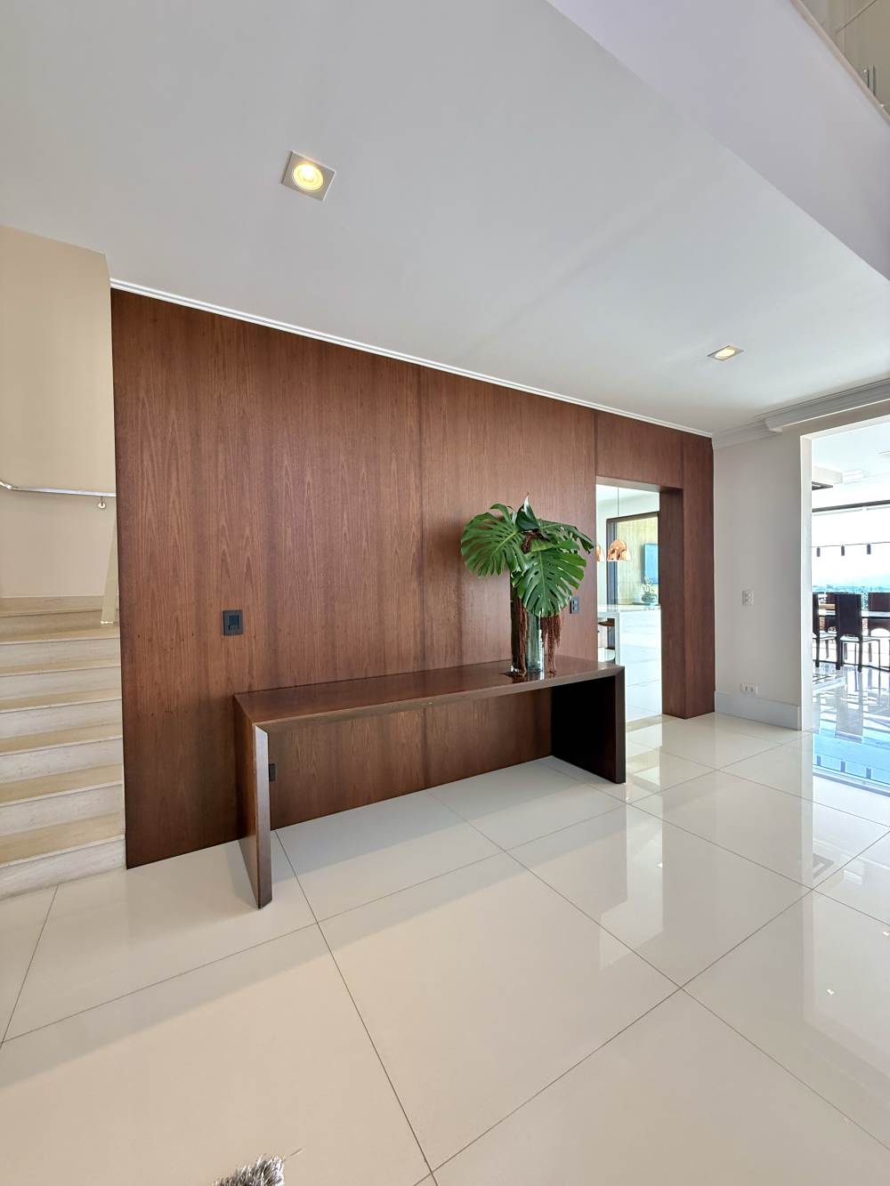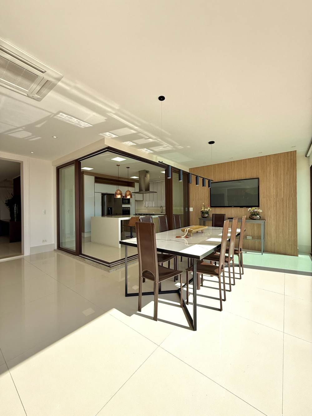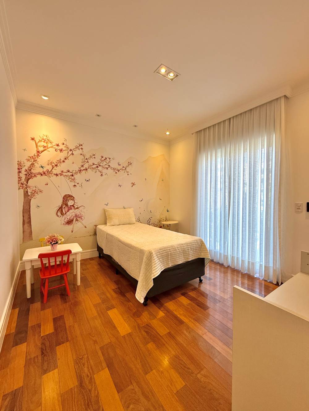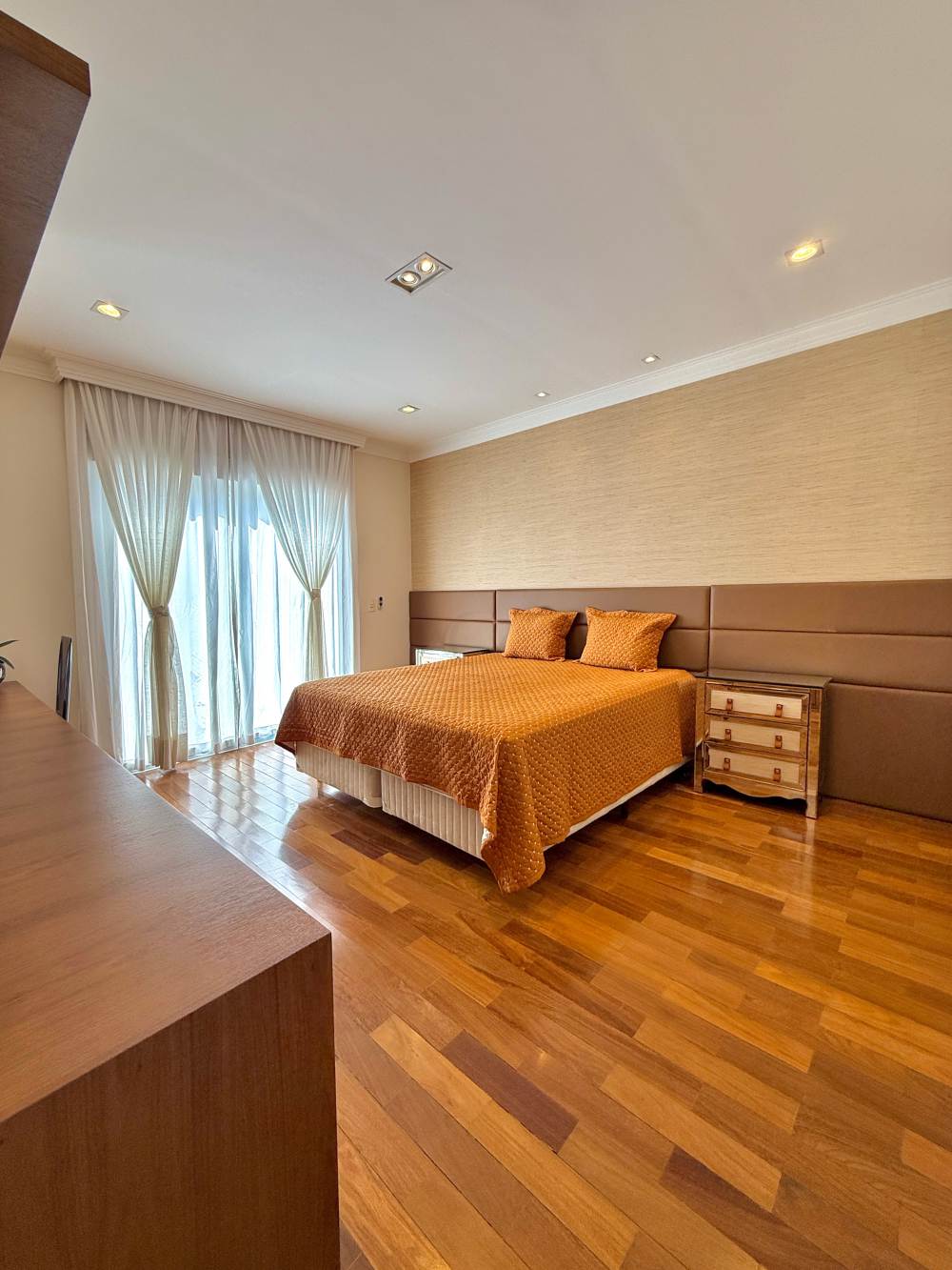 O pé direito duplo é imponente e dá um charme diferenciado ao imóvel. São 4 suítes, muito bem distribuídas em uma área construída de 430 m². A casa já está totalmente mobiliada e decorada, prontíssima para morar! Os móveis fixos são, em sua maioria, da ID Móveis, com exceção do espaço gourmet, que é assinado pela Kitchens. A infraestrutura é completa, com toda comodidade que a sua família busca!
