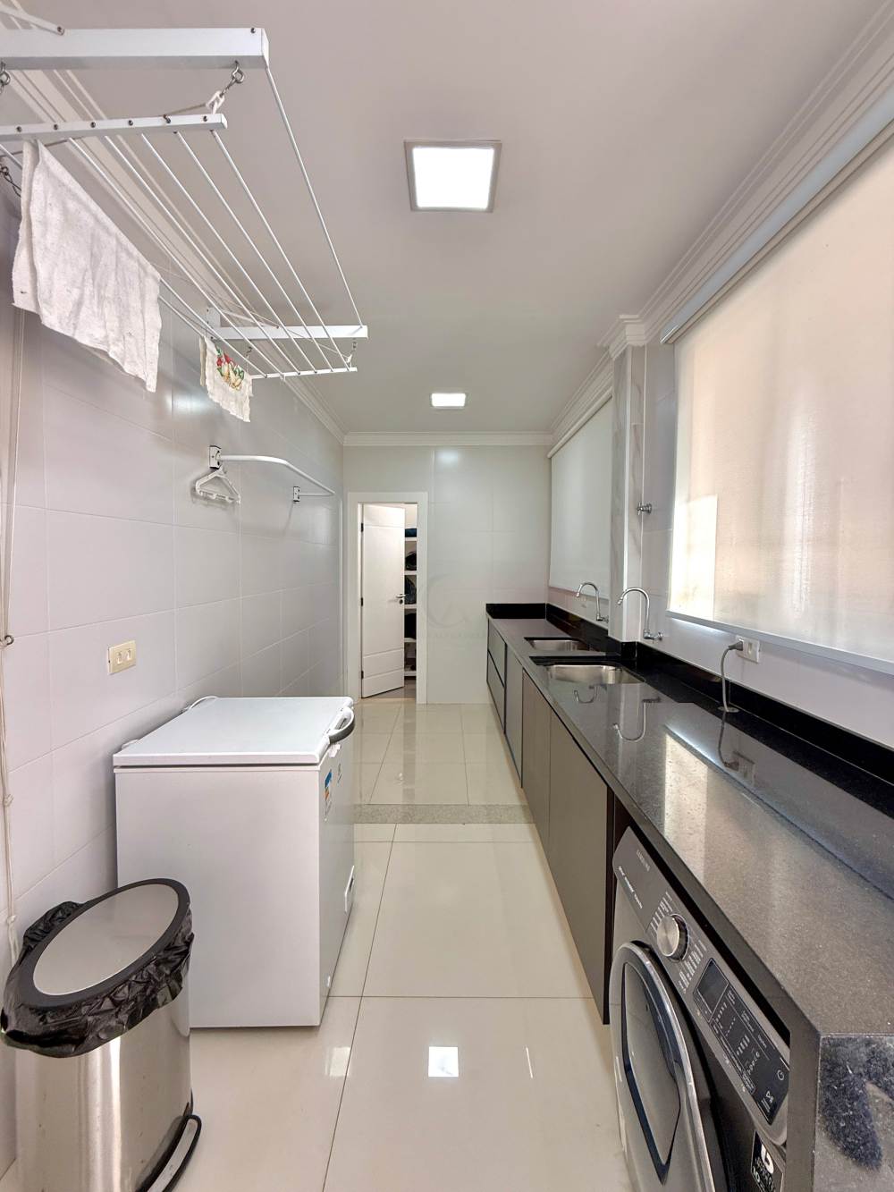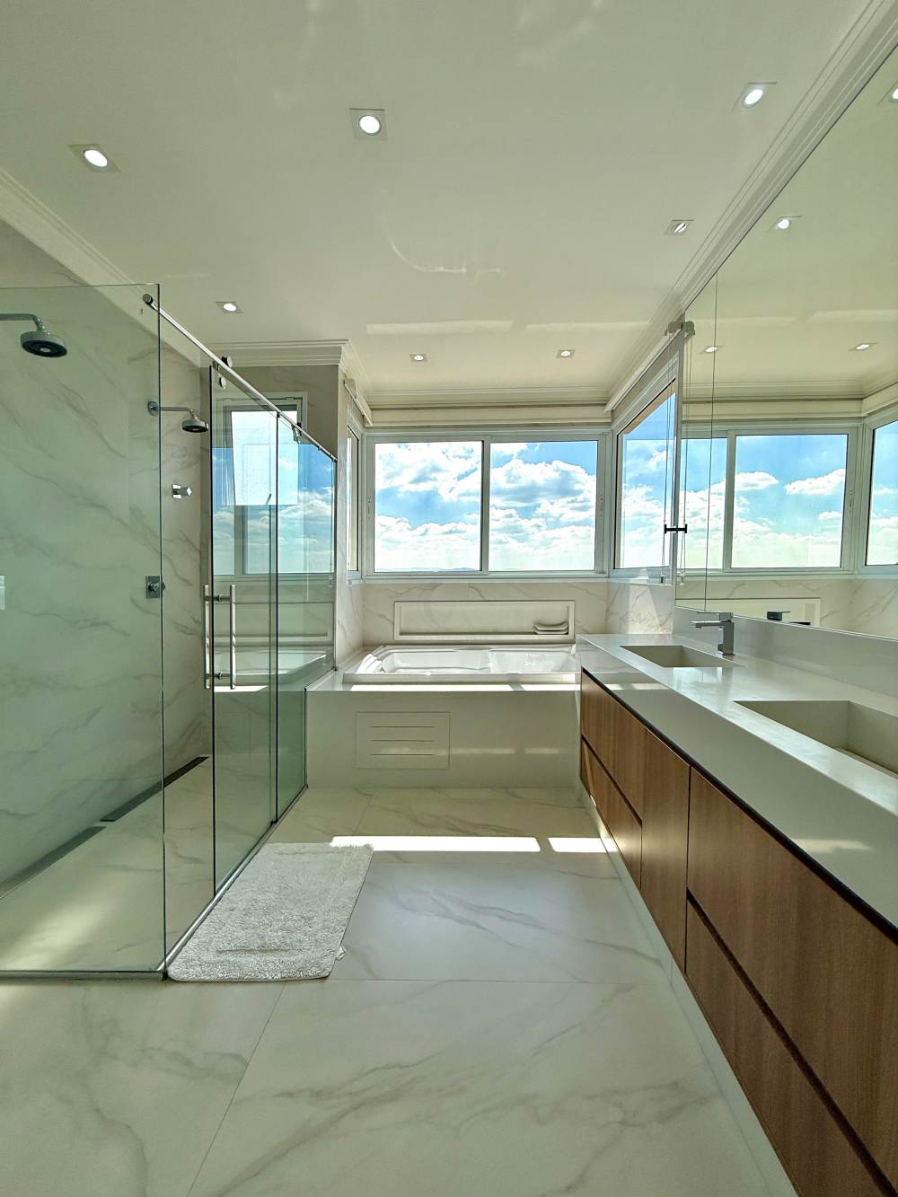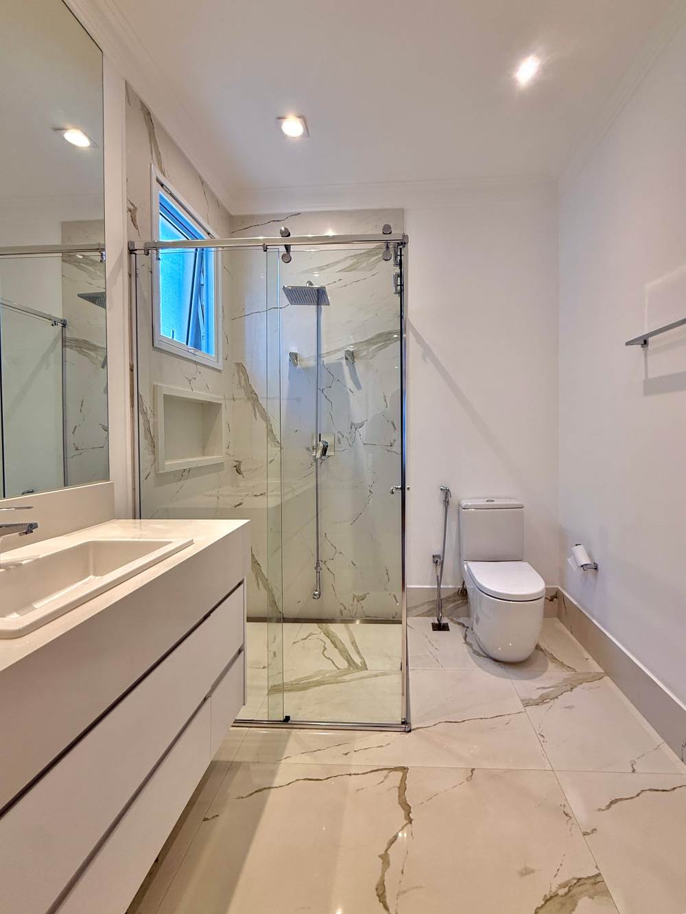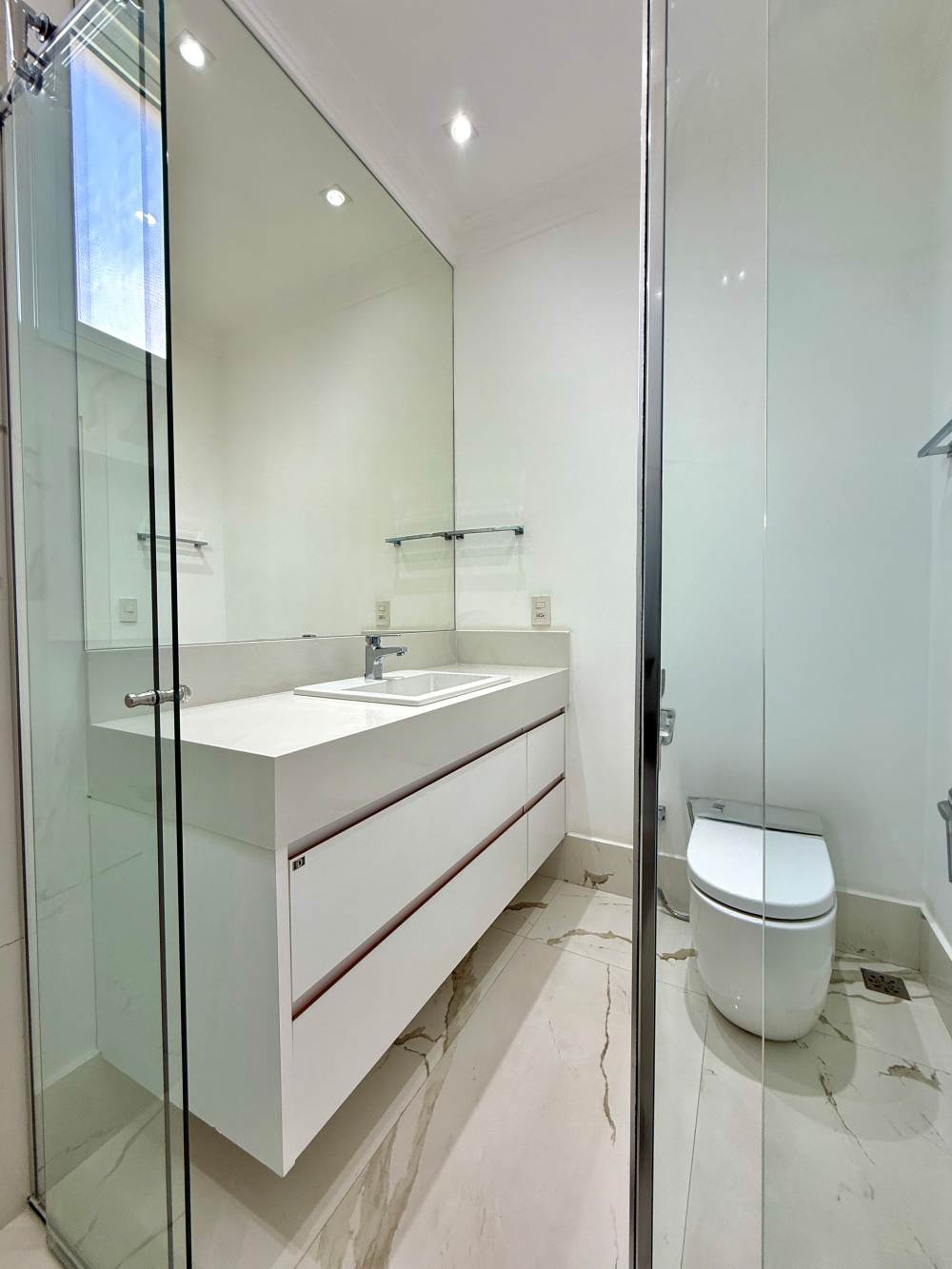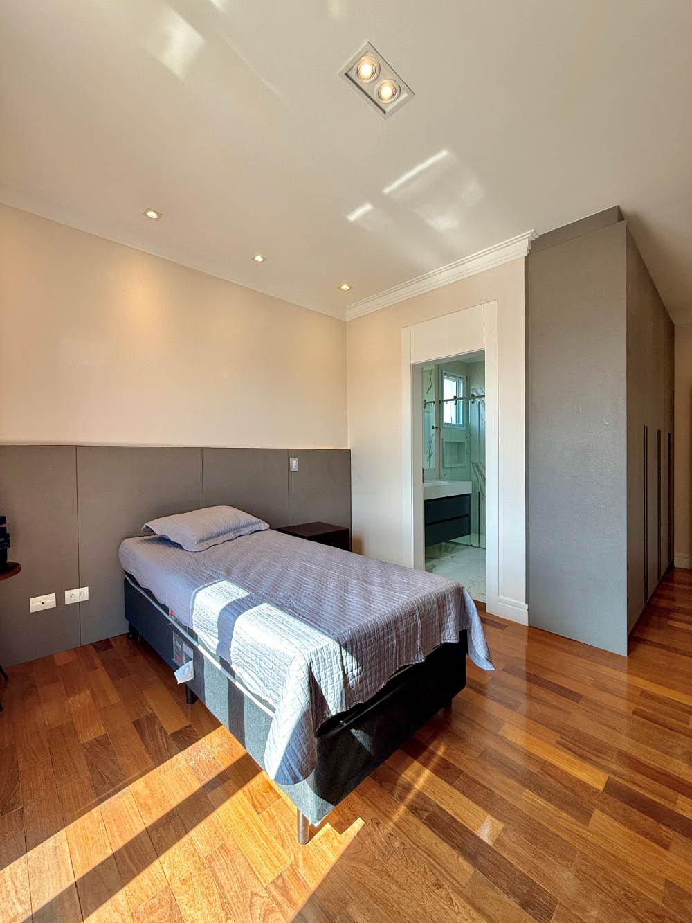 O pé direito duplo é imponente e dá um charme diferenciado ao imóvel. São 4 suítes, muito bem distribuídas em uma área construída de 430 m². A casa já está totalmente mobiliada e decorada, prontíssima para morar! Os móveis fixos são, em sua maioria, da ID Móveis, com exceção do espaço gourmet, que é assinado pela Kitchens. A infraestrutura é completa, com toda comodidade que a sua família busca!