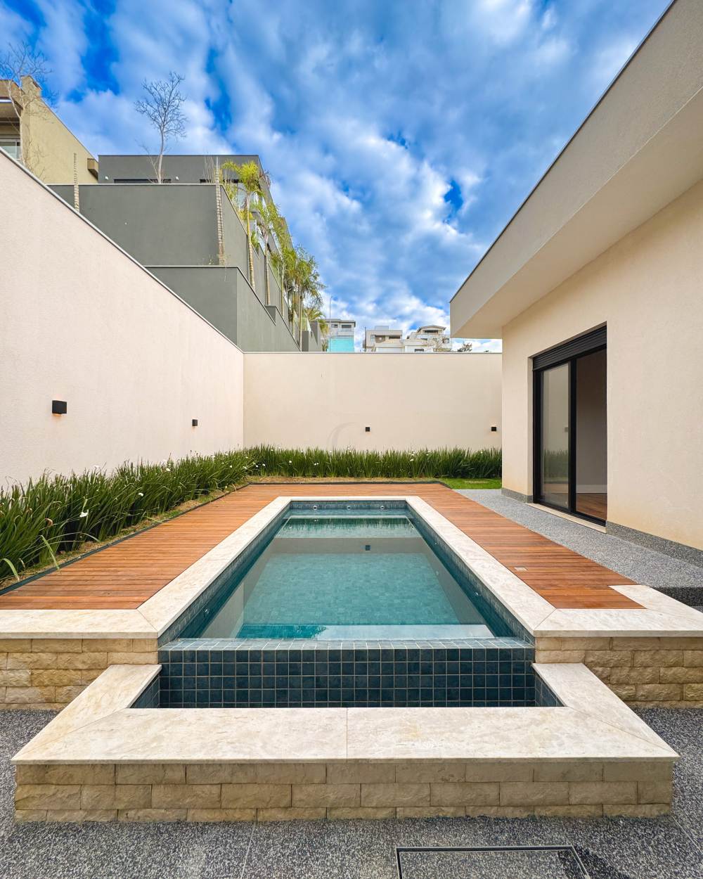 Piscina com borda infinita e vista agradável