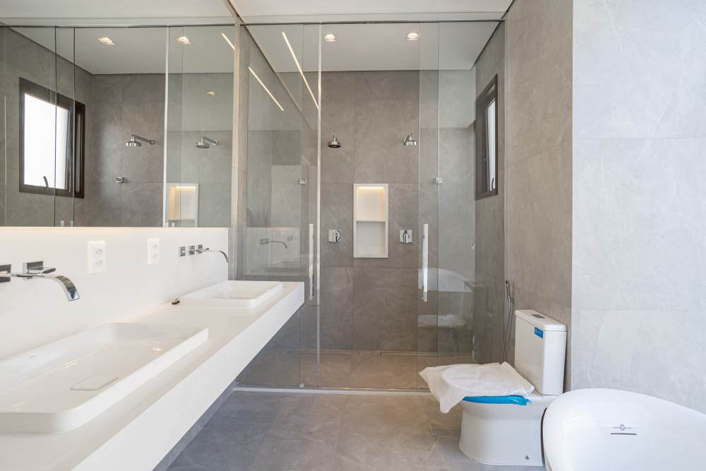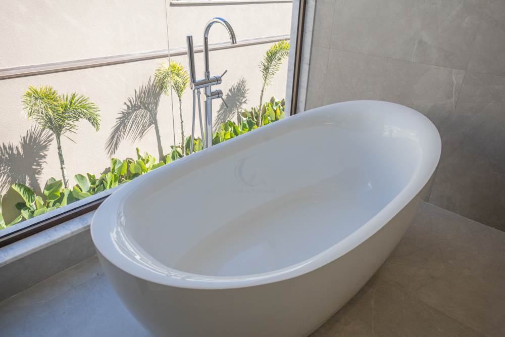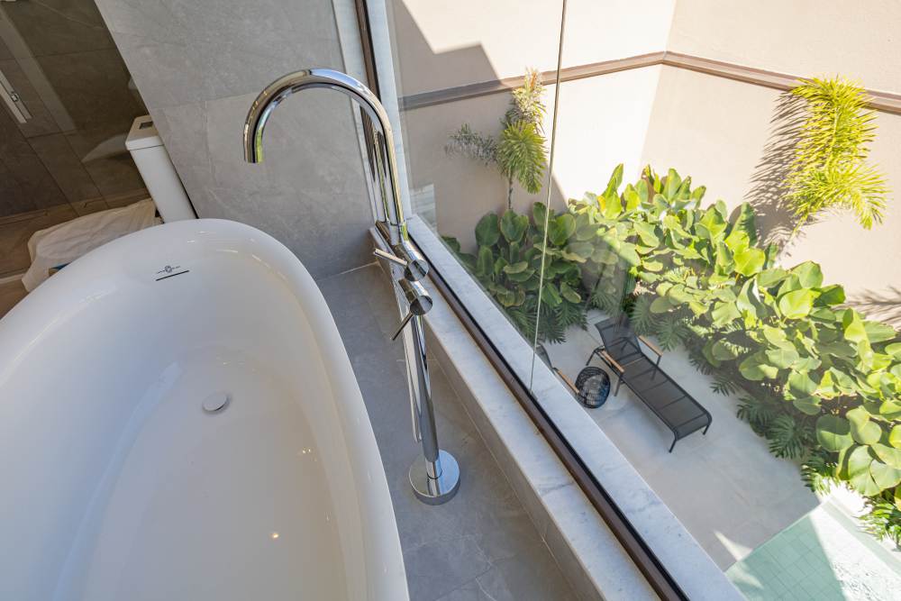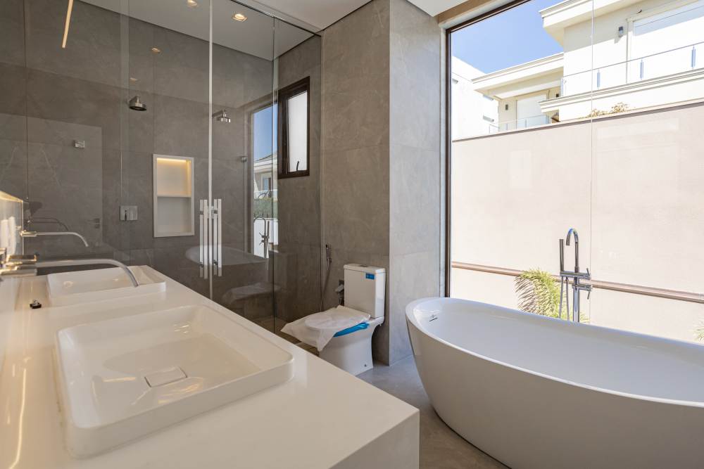 ● Suíte master com closet, banheira Larum Blanc e varanda