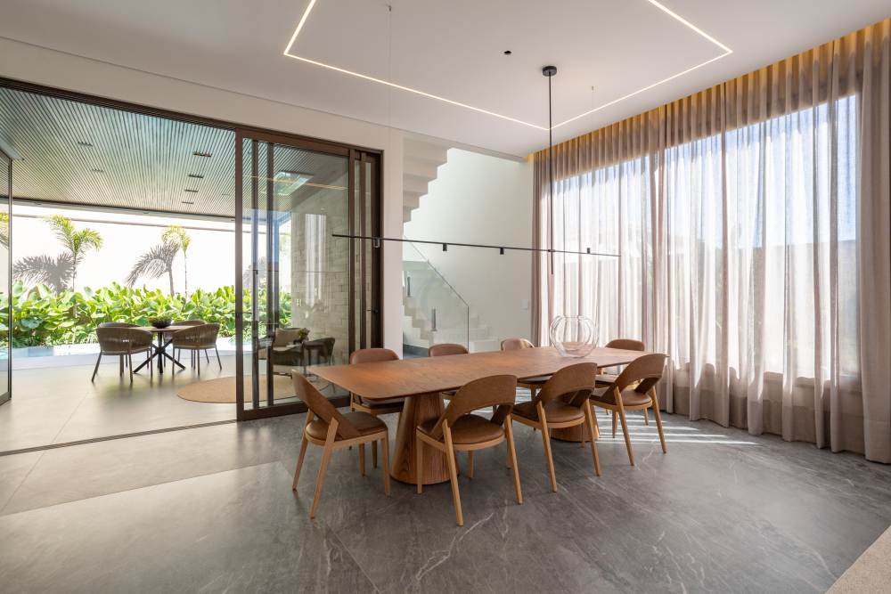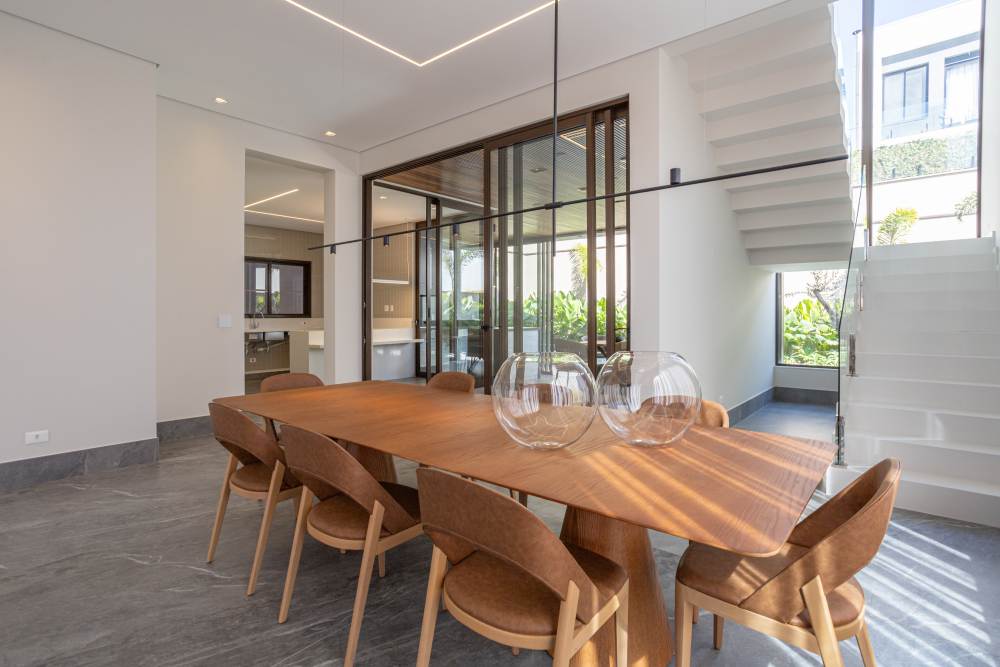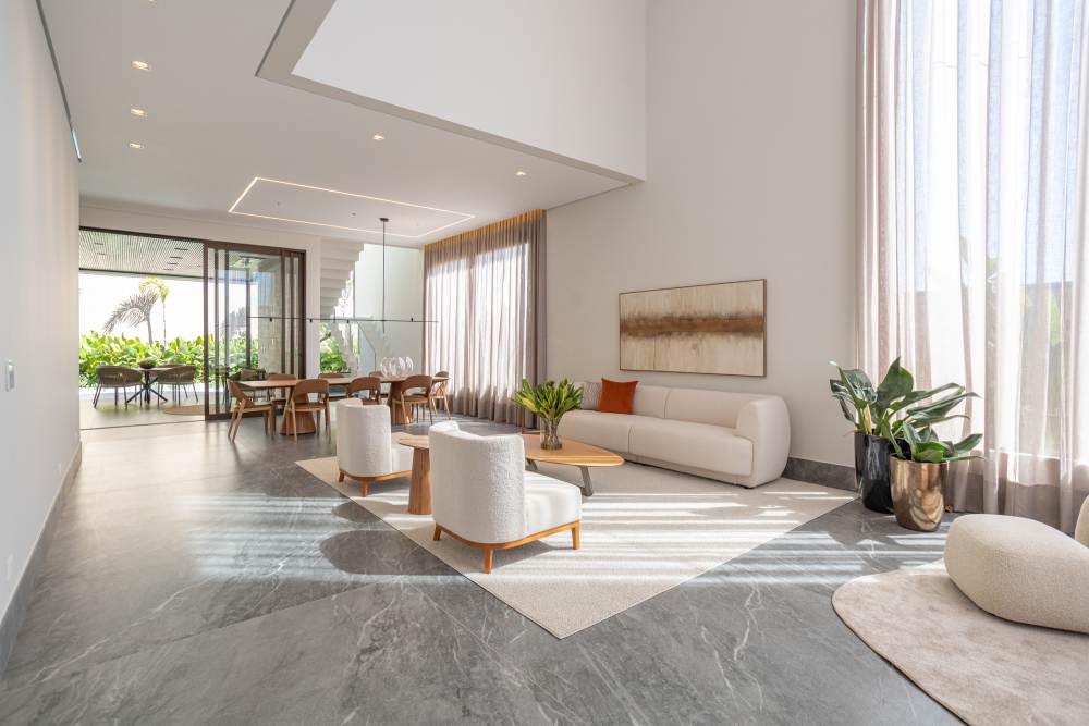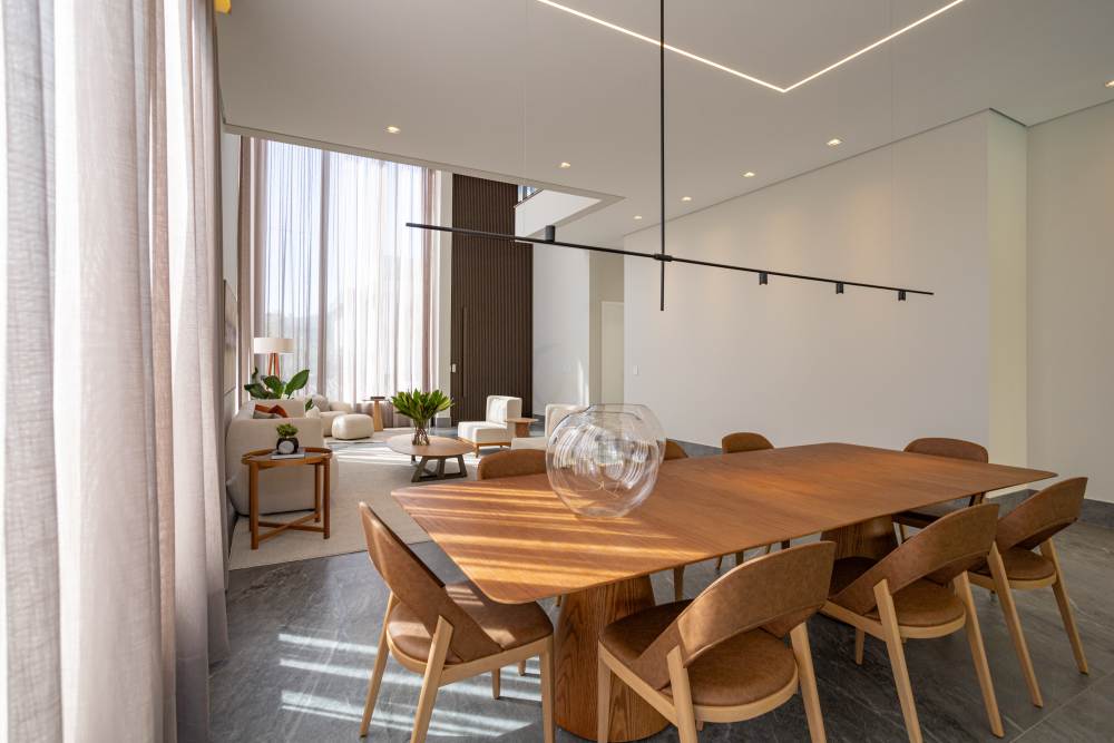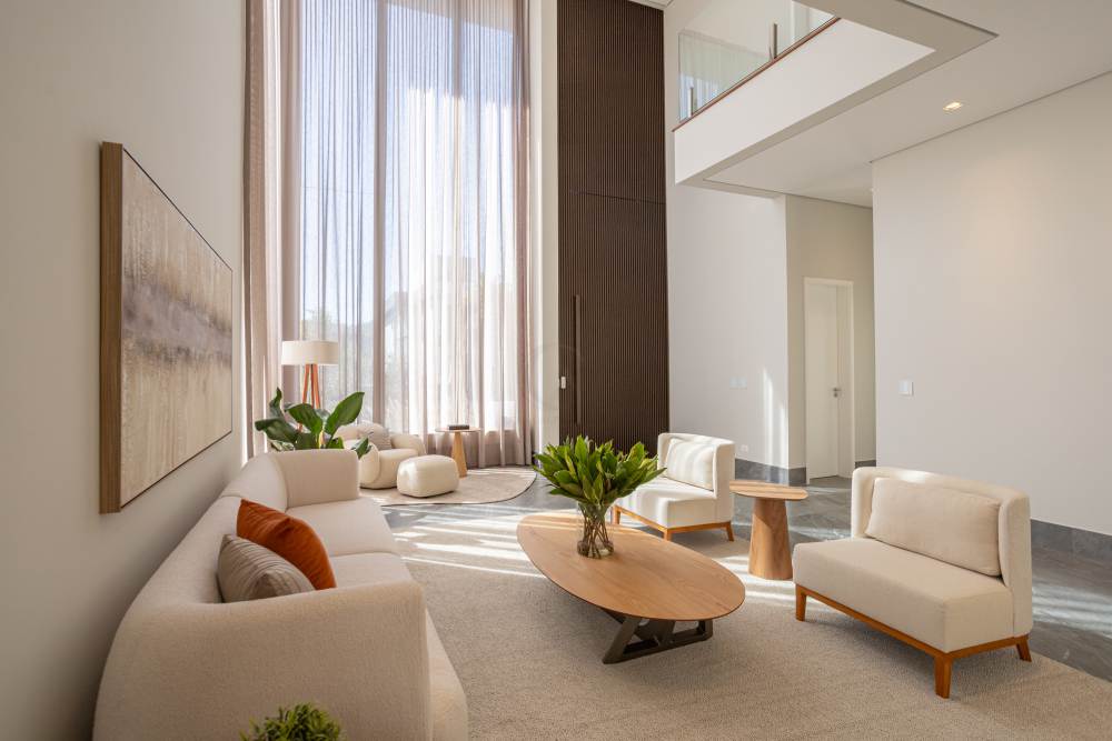 Projeto arquitetônico moderno, pé-direito duplo, integração entre os ambientes e execução