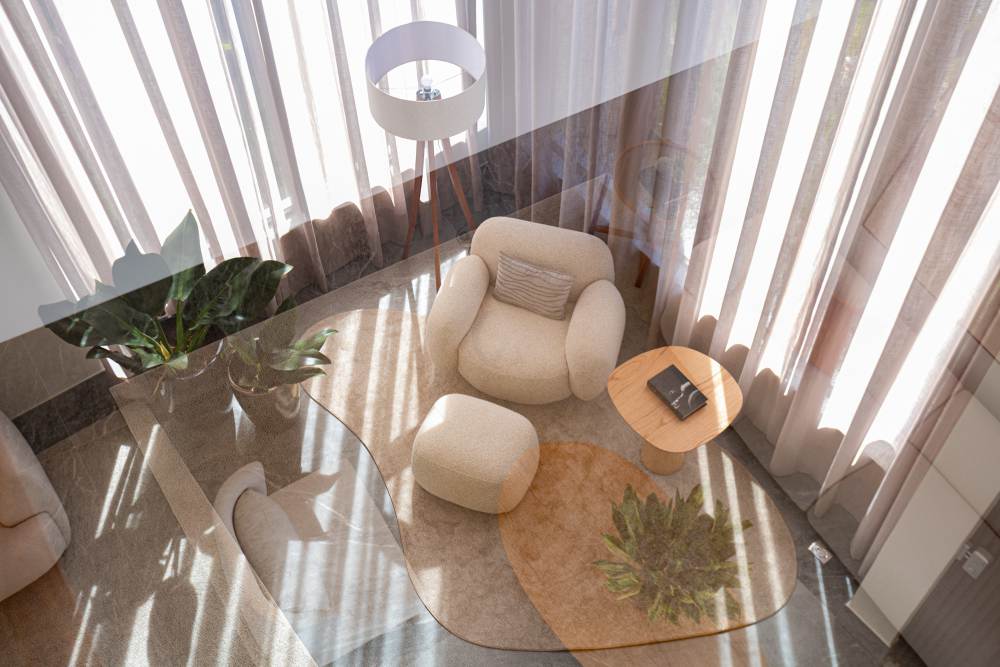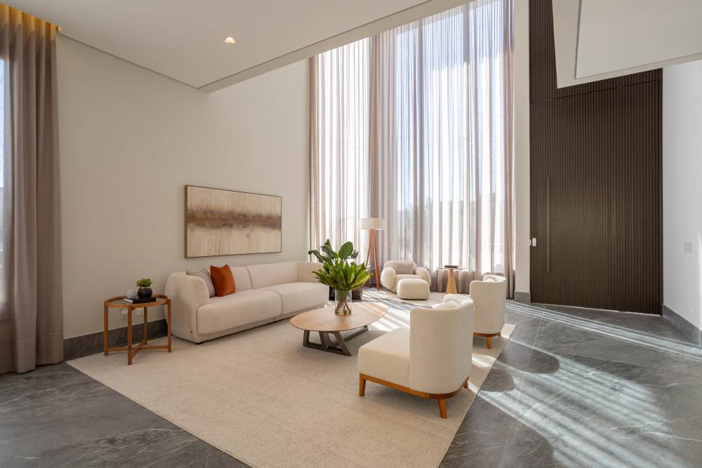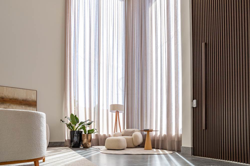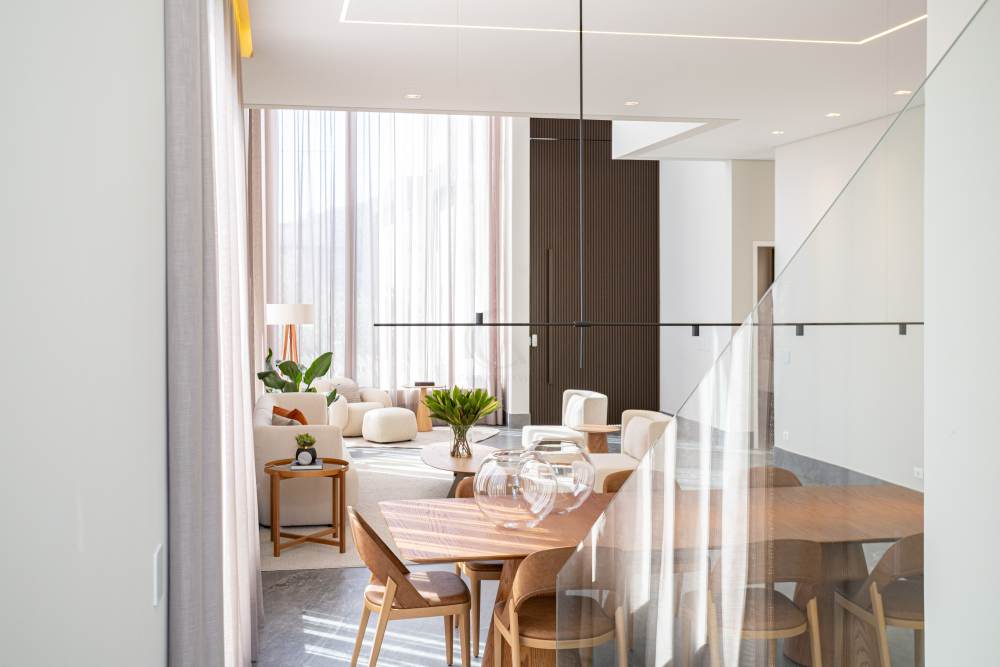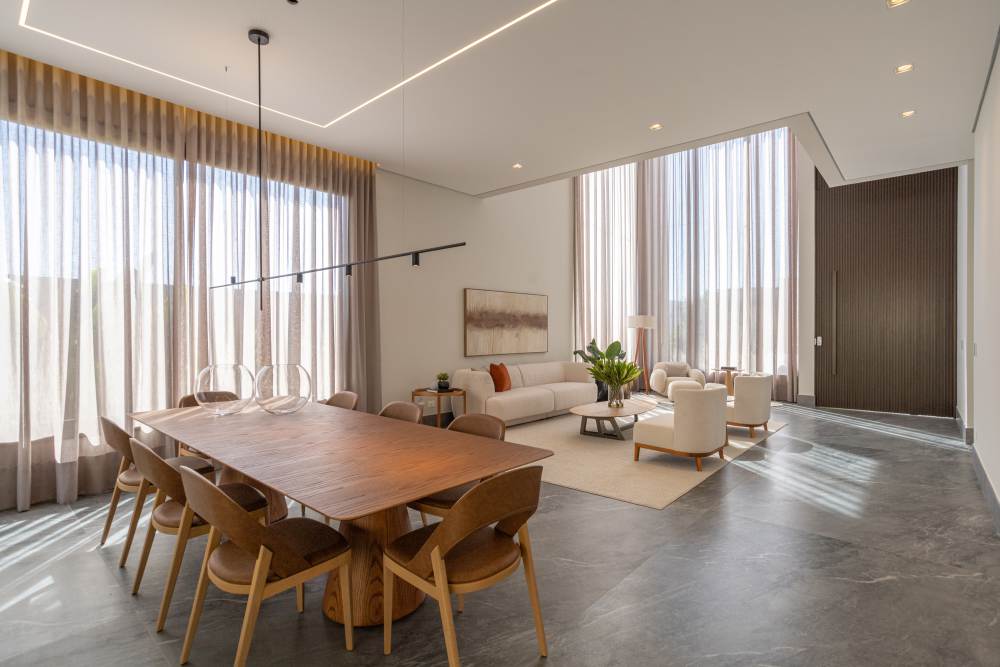 Projeto arquitetônico moderno, pé-direito duplo, integração entre os ambientes e execução