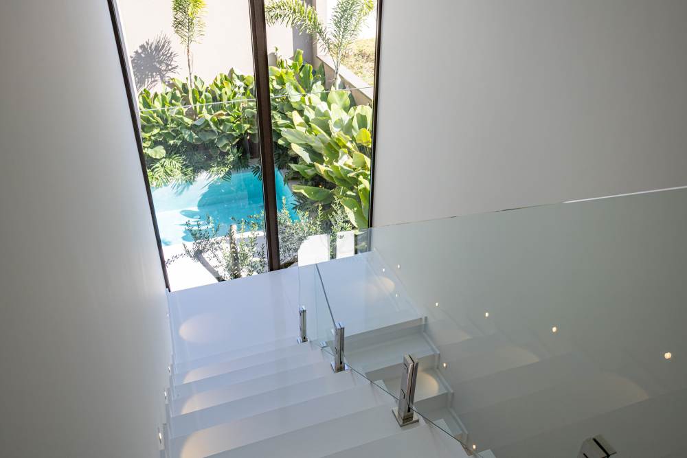 ● Varandas em mármore Espírito Santo e guarda-corpo em inox e vidro