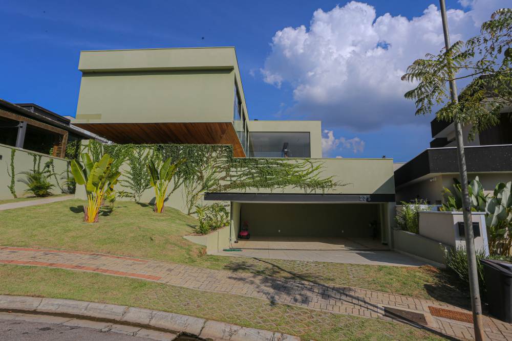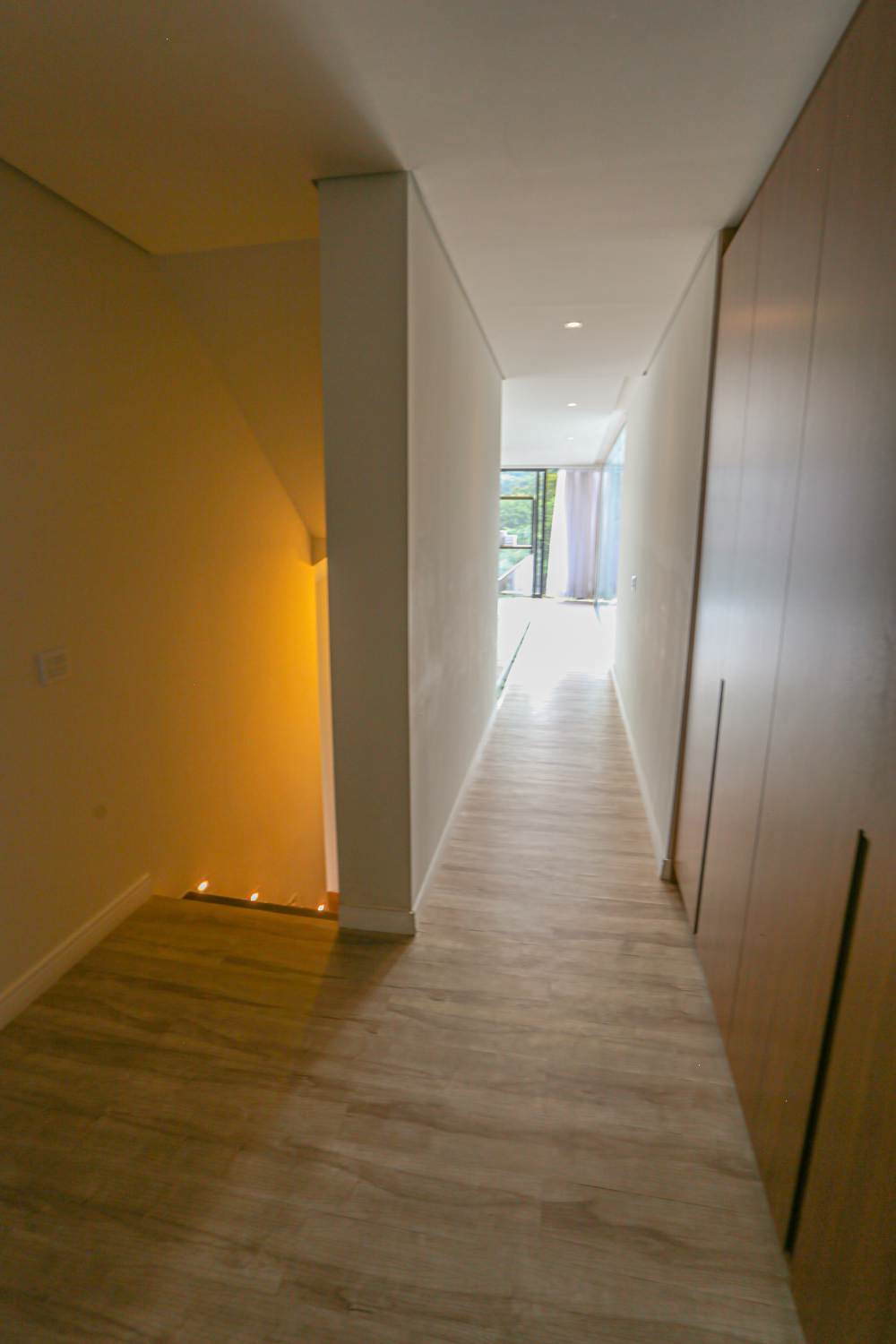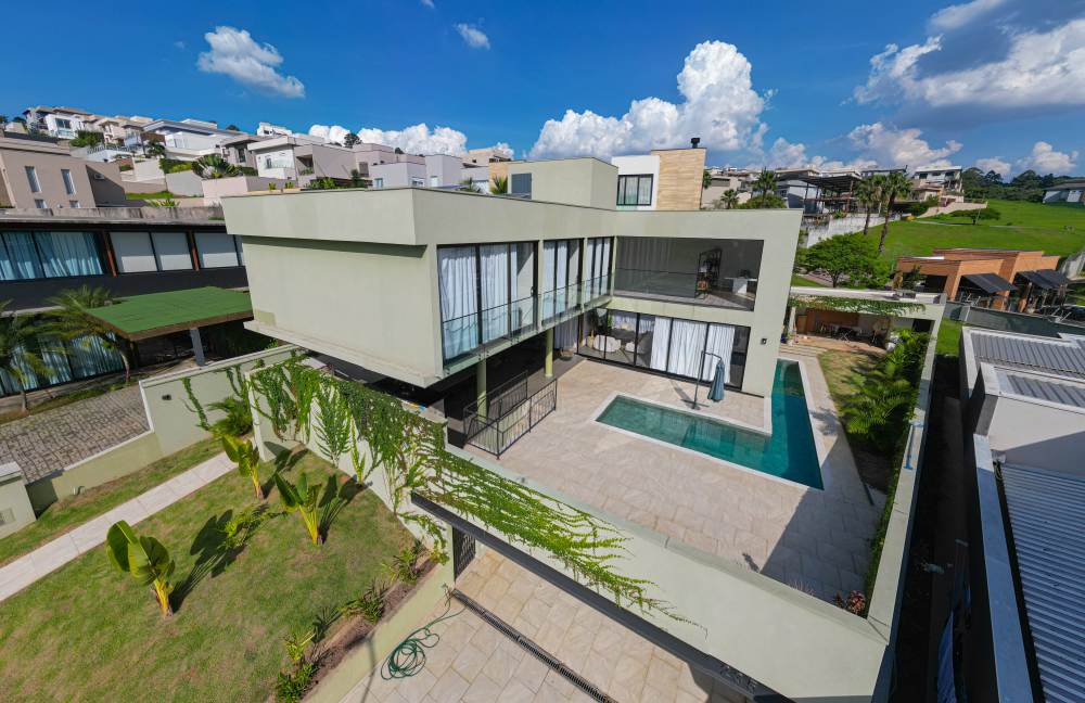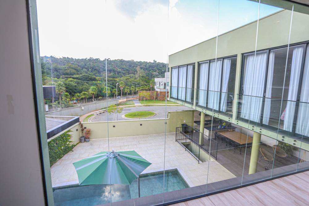 Casa nova, moderna com 4 suítes sendo 1 suíte térrea e 3 suítes no pavimento superior, com área construída de 500m² sendo 25,80m² de área de lazer (incluindo piscina).
