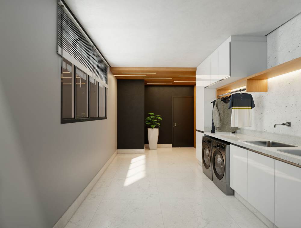 • Conceito de cozinha aberta mas com opção de fechamento com portas de correr