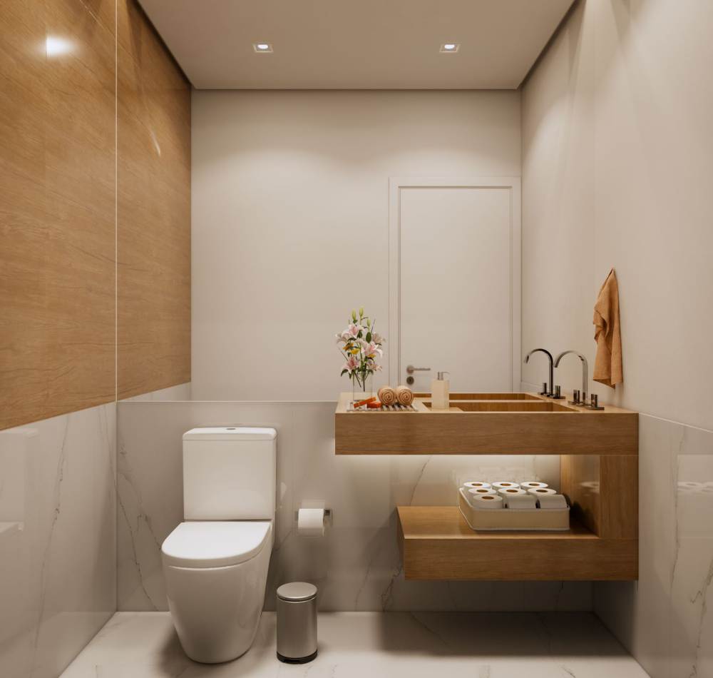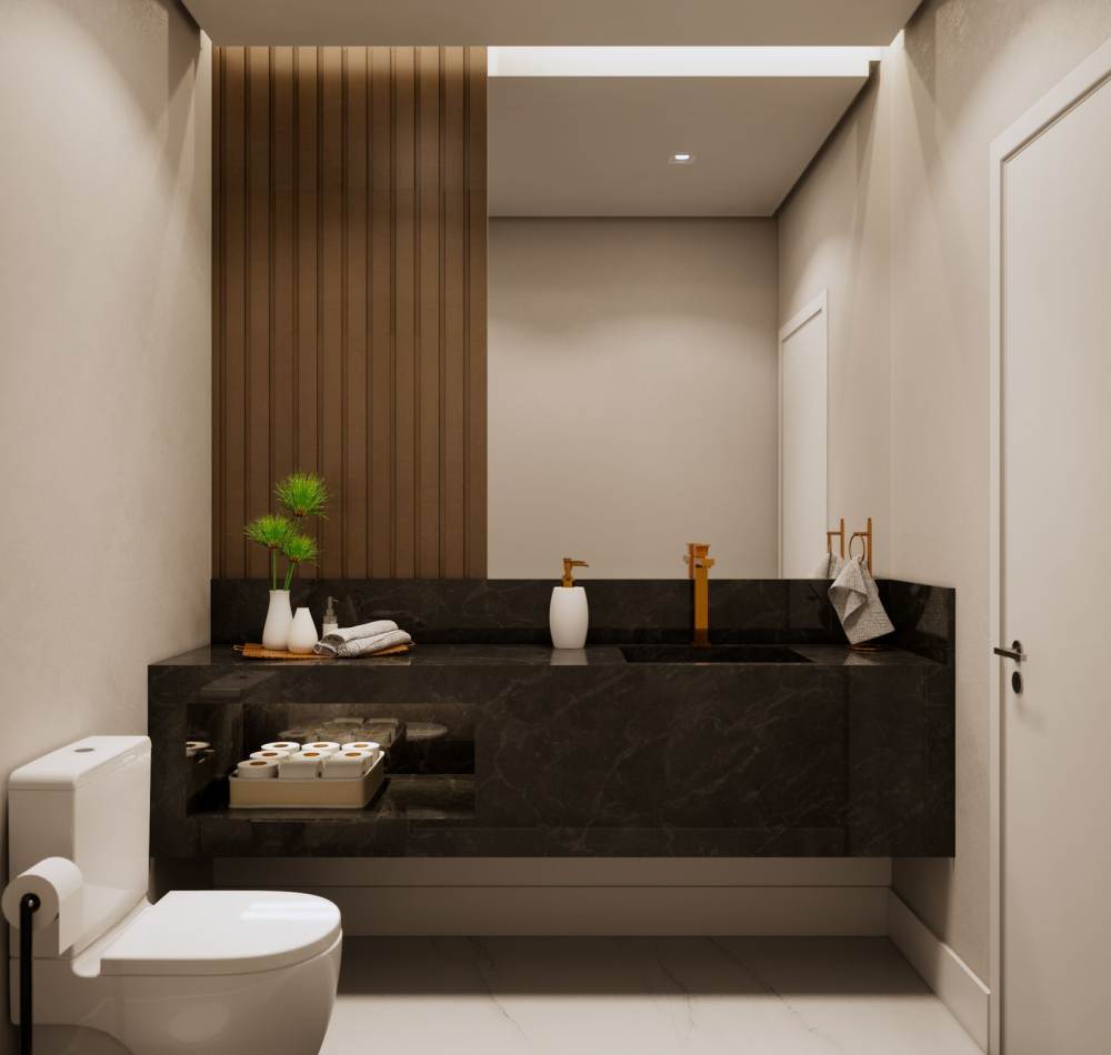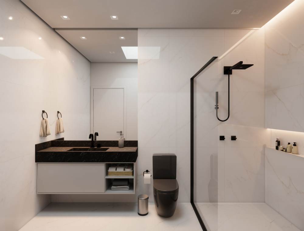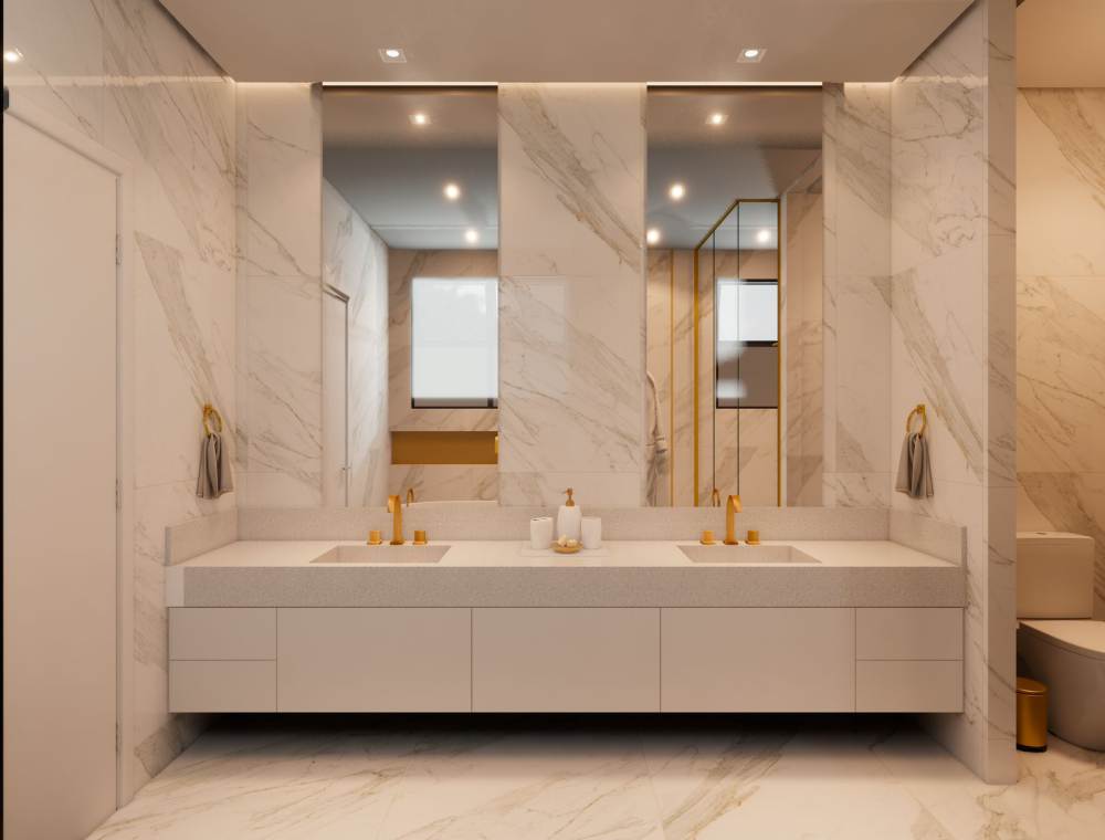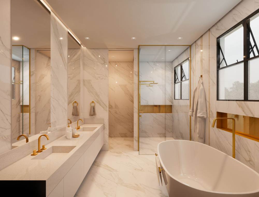 • Acabamentos com mármores, porcelanatos Decortiles de grandes dimensões