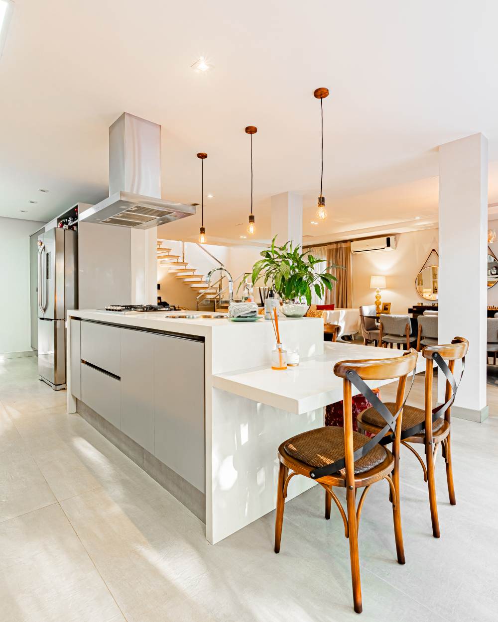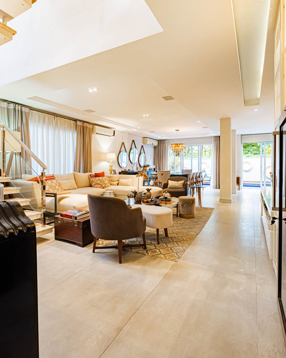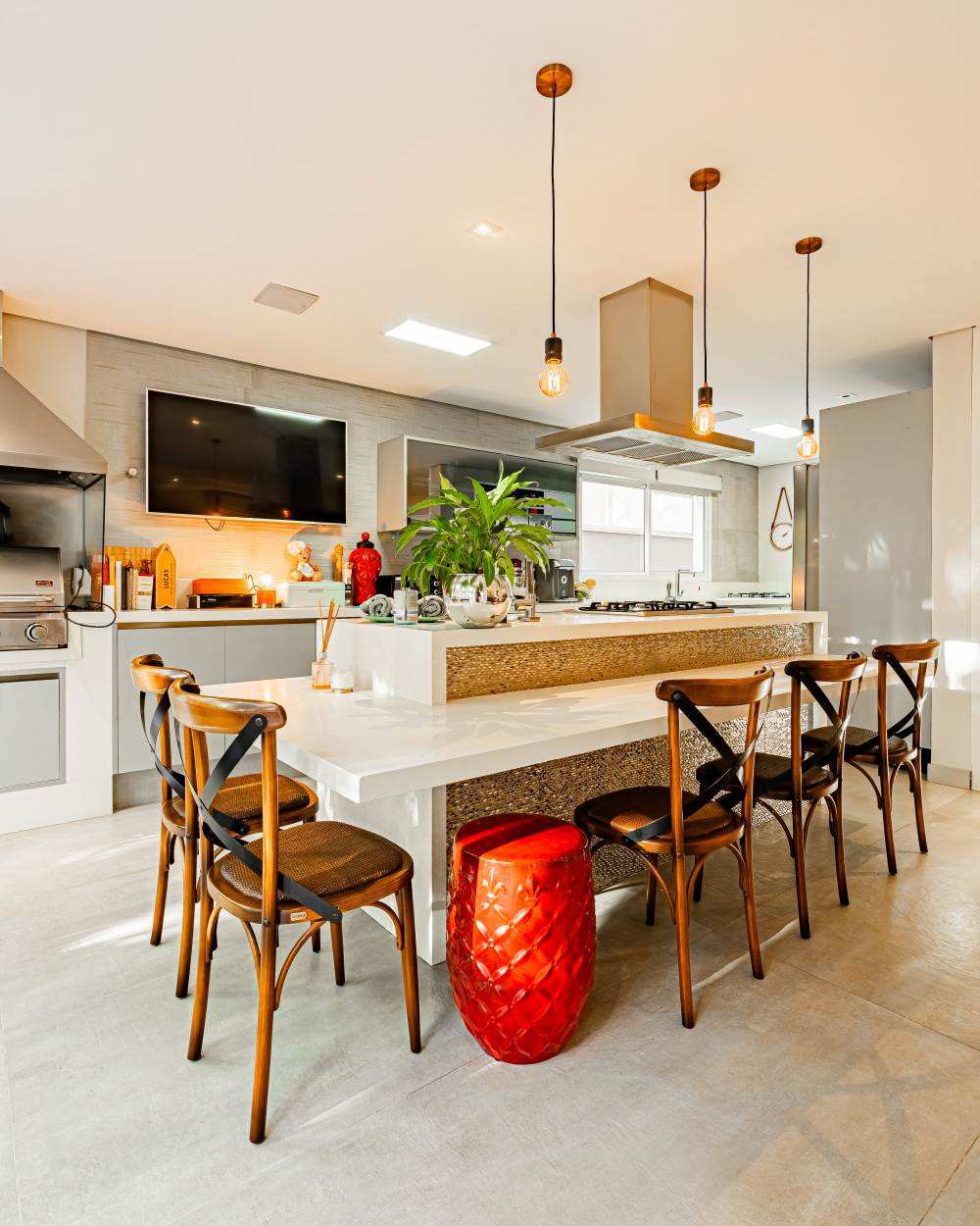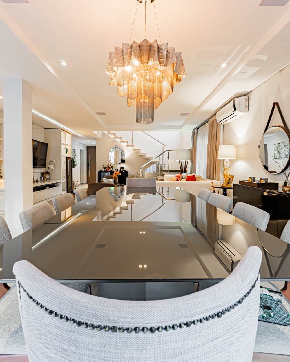 • Sala de estar/TV, sala de jantar, cozinha com ilha, tudo integrado ao gourmet, piscina com