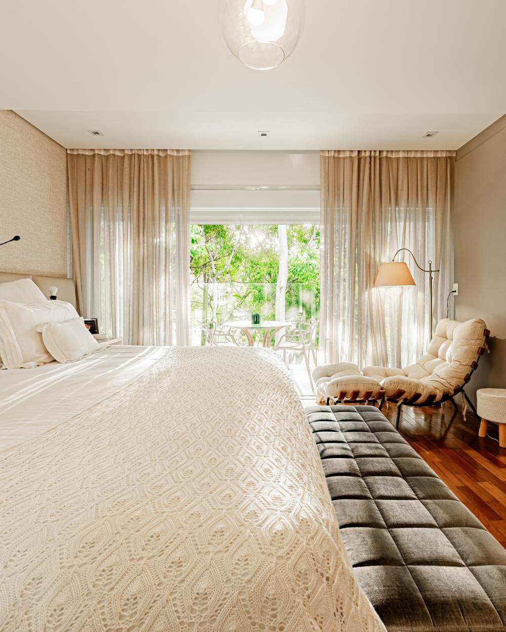• 04 suítes amplas, sendo a máster com varanda, 02 closets (sr e sra), banheiro com cuba e