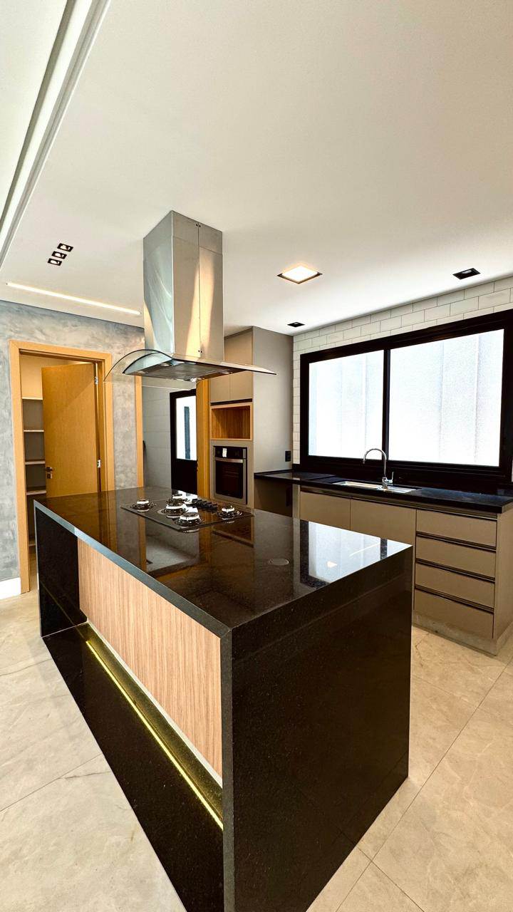Cozinha com marcenaria completa e com fogão, forno e coifa instalados